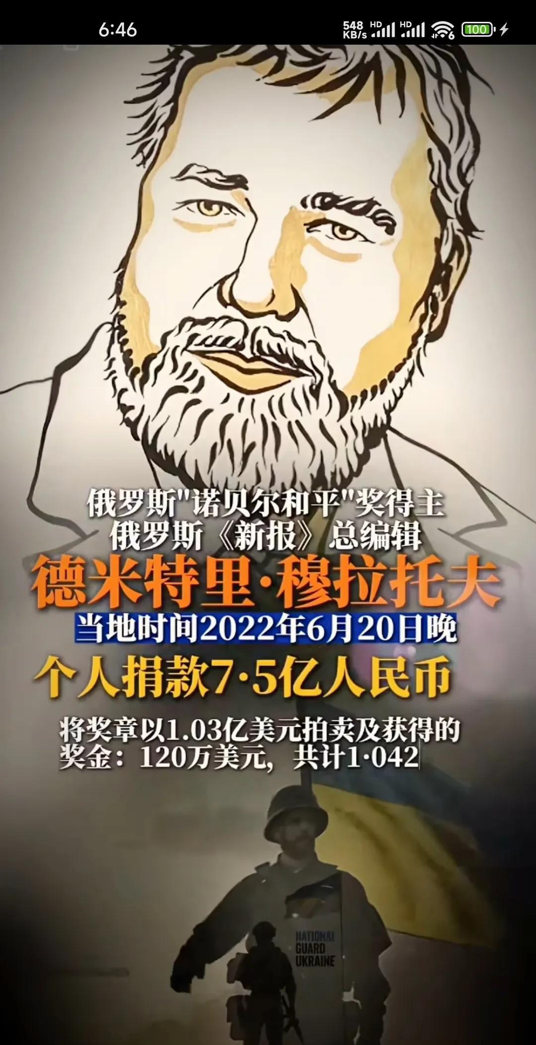 实在不理解!世界竟有1500万人为乌捐款,总金额已达3200亿美元!捐款人多是商界科技体育艺术名人,还有不少日本韩国华裔影视明星! 苍狼想不到的是,这些捐款人中,竟有俄籍商界大佬,知名媒体人! 其中俄罗斯超级大富豪,“阿尔法”私人银行老板米哈伊尔.弗里德曼,以个人名义向乌克兰捐款10亿美元! 俄诺贝尔和平奖获得者,“新报”总编辑穆拉托夫,卖掉诺贝尔奖章,并将奖金合计合7.5亿人民币全部捐献! 当然这是其中两位,还有许多不知名俄籍人士!苍狼不明白:他们这不是吃里扒外?难道不爱自己祖国吗? …………