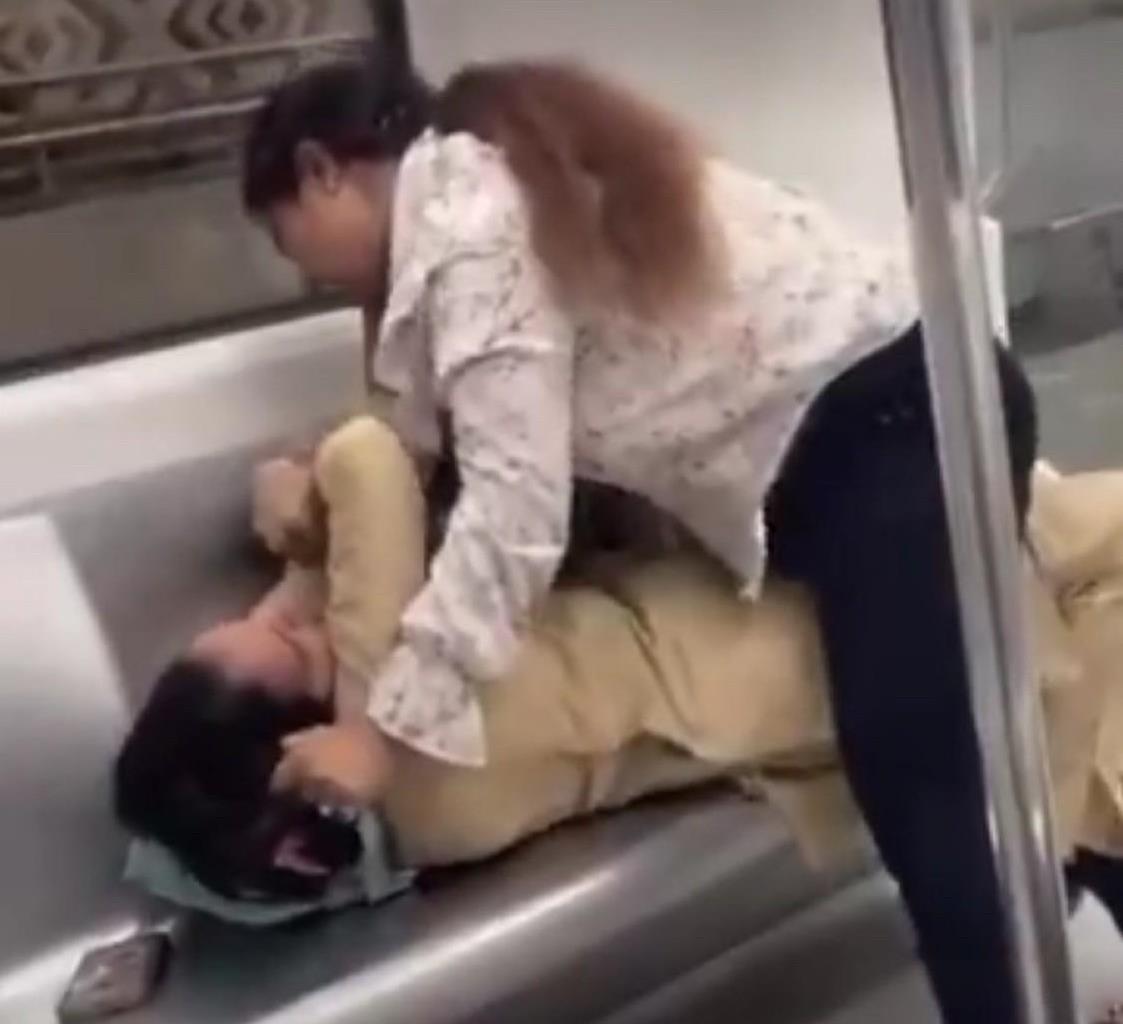 若论印度话题度最高的地铁系统,非德里地铁莫属。 照片是两个女子因座位发生激烈
