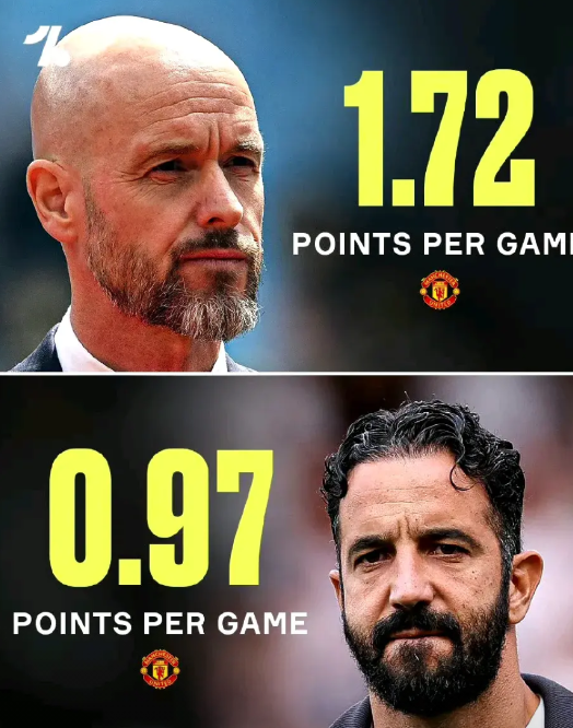图2,滕哈赫执教曼联场均1.72分,这在豪门里面已经够差,阿莫林是0.97分刚好是光头一半?