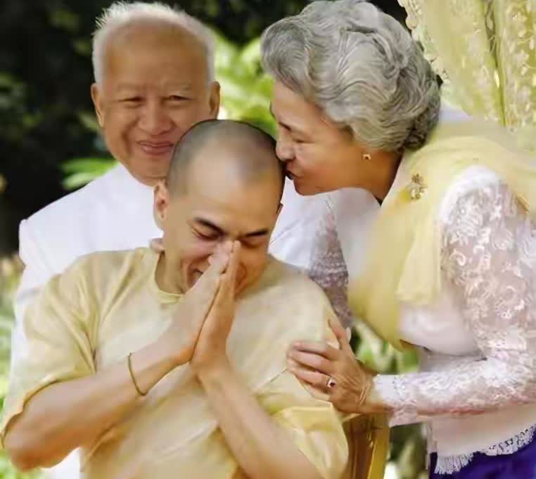 柬埔寨国王西哈莫尼和太后莫尼列 柬埔寨国王西哈莫尼和太后莫尼列,他和父母一