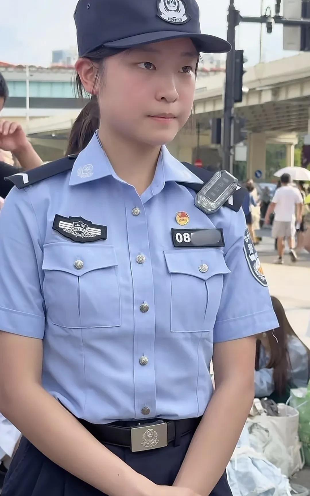 这个警察小姐姐看起来好年轻啊,这么小就参加工作了吗?青涩的笑容,一脸婴儿肥还没褪去,有人说是刚入职的辅警,有人知道吗?