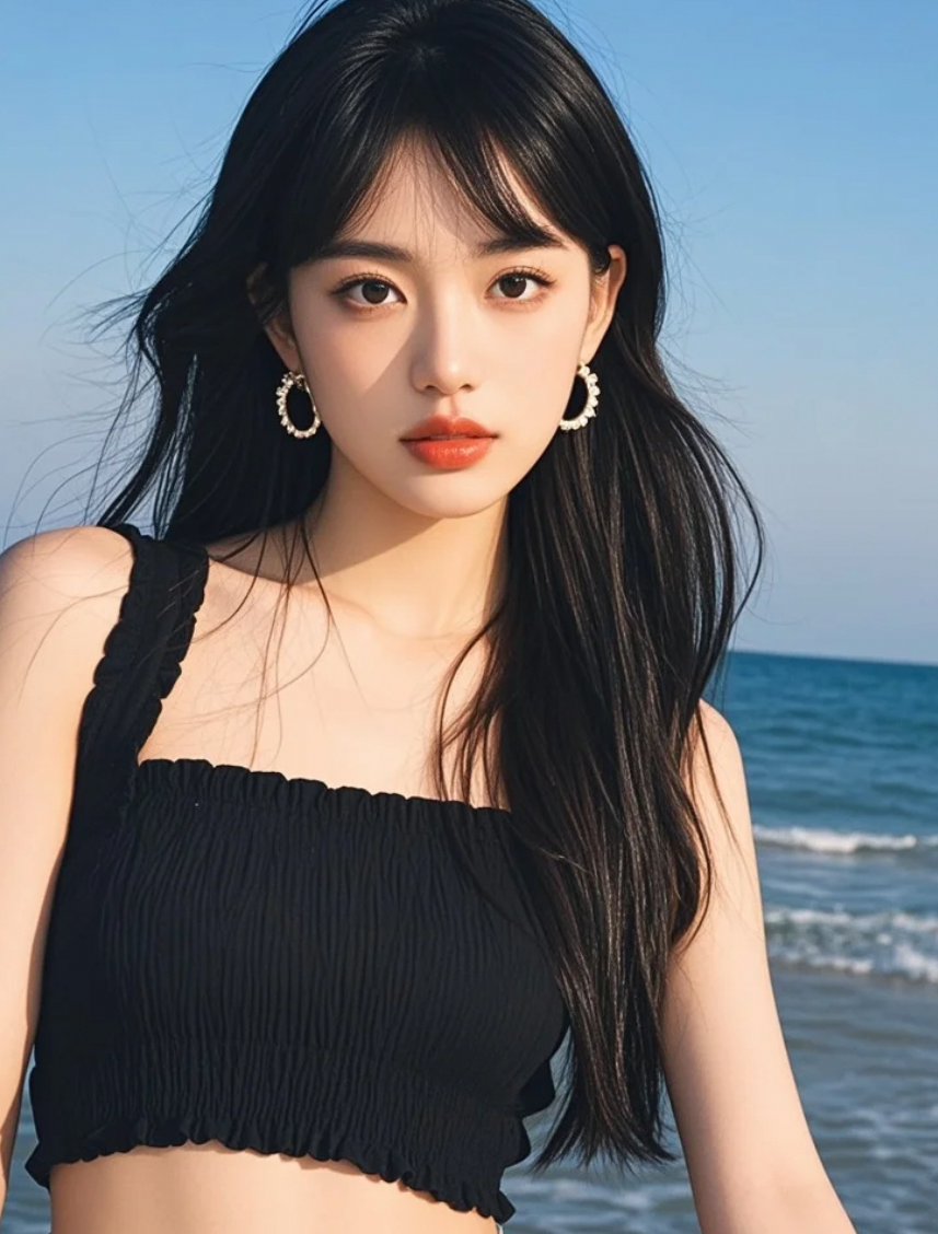 海浪轻拍岸边,应和着她内心的宁静节拍