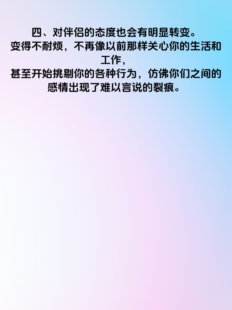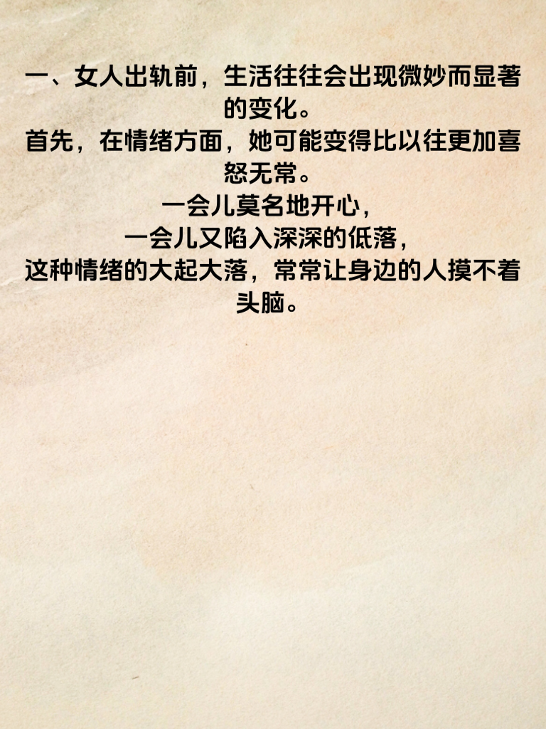 一、女人出轨前,生活往往会出现微妙而显著的变化。首先,在情绪方面,她可能变得比以往更加喜怒无常。一会儿莫名地开心,一会儿又陷入深深的低落,这种情绪的大起大落,常常让身边的人摸不着头脑。 二、她开始注重自己的外表,花费大量时间精心打扮。从前随意的穿着不见了,取而代之的是每天不同风格且精致的装扮,似乎在为某个特别的人准备着。 三、生活习惯也悄然改变。比如,她可能突然增加了外出的频率,常常以各种借口晚归。手机不离身,还会背着你偷偷回复信息,对手机的关注度远超从前。 四、对伴侣的态度也会有明显转变。变得不耐烦,不再像以前那样关心你的生活和工作,甚至开始挑剔你的各种行为,仿佛你们之间的感情出现了难以言说的裂痕。 五、社交圈子也发生变化。一些原本关系不错的朋友,她开始渐渐疏远,却又频繁地和某些新认识的人交往,而且对这些新交往对象的情况讳莫如深。