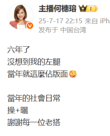 但实际上在六年前,中天小姐姐就因为露美腿火过一次,在台湾省的社交媒体上过热搜了!
