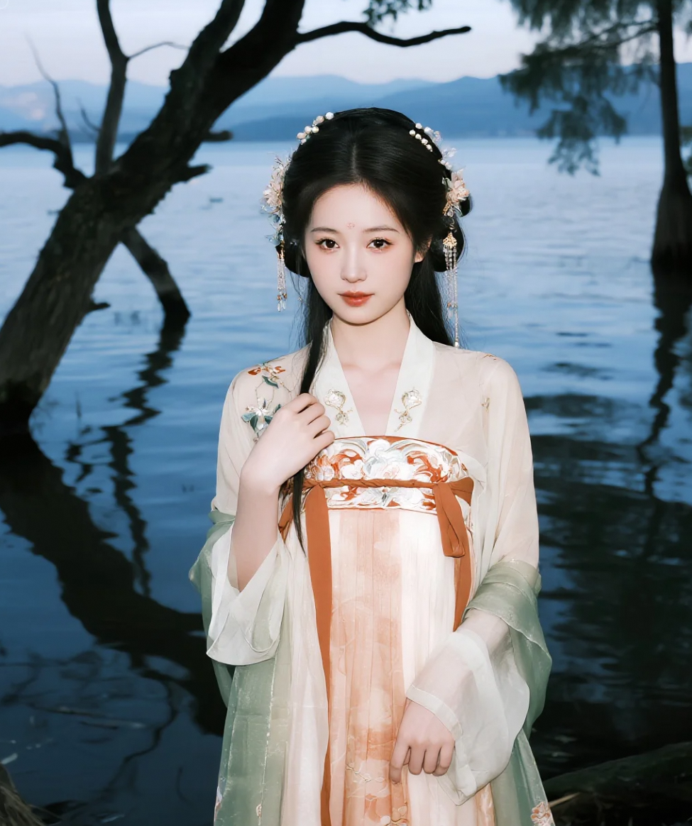湖边撑伞的古风女孩,你觉得仙不仙?