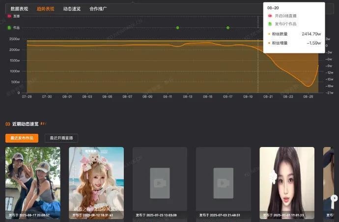 在娱乐圈这个瞬息万变的名利场,明星人气的起伏往往就在一瞬间。近期,虞书欣就因深陷舆论风波,成为大众关注焦点。先是早年参加的综艺《一年级·毕业季》中的旧片段被挖出,节目里她的一些言行被指存在霸凌倾向,引发广泛争议 。与此同时,“老潘财商事件”也让她的家族企业陷入舆论漩涡,财经博主质疑其家族企业与国企存在异常交易、涉嫌利益输送等问题,这一爆料迅速在网络上掀起波澜。 在种种争议之下,虞书欣的人气遭受重创。据第三方数据显示,她在某平台的账号粉丝数已降至2341.8万,短短7天就掉粉超过72万。这一惊人的数据变化,直观地反映出她当前面临的舆论危机。曾经凭借“小作精”人设吸粉无数,在影视、综艺领域都备受瞩目的她,如今却因这些负面事件,让不少粉丝感到失望,纷纷选择脱粉。而这场风波也不禁让人思考,在公众对明星道德和商业行为日益关注的当下,明星该如何更好地维护自身形象与公众信任。