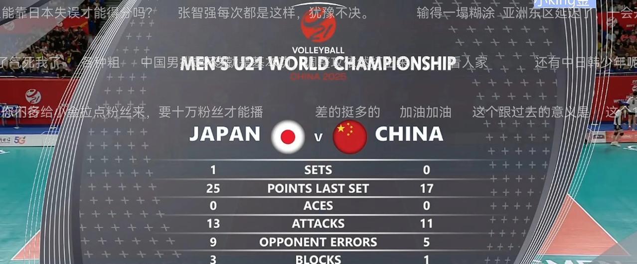 U21男排世锦赛中国队对阵日本队,第一局中国小男排17-25失利。 中国小男排实