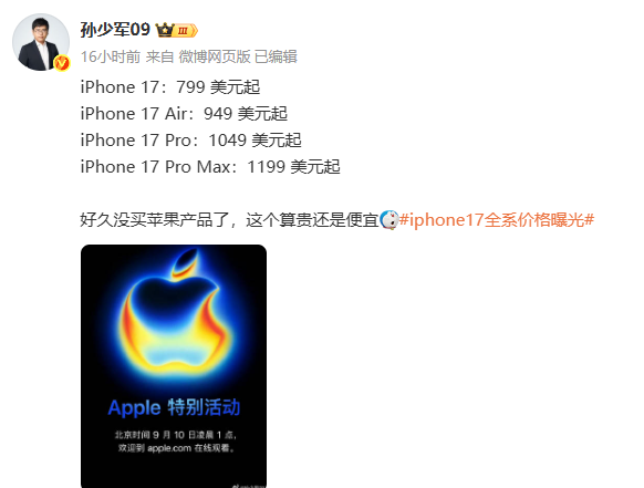 就在刚才,不知道孙少军在哪里找到的,他已经把新的苹果系列价格全部都弄到了!