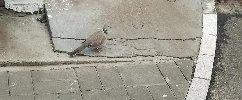 路边抓拍的珠颈斑鸠,我离它不足2m,正准备拍个视频,飞走了。