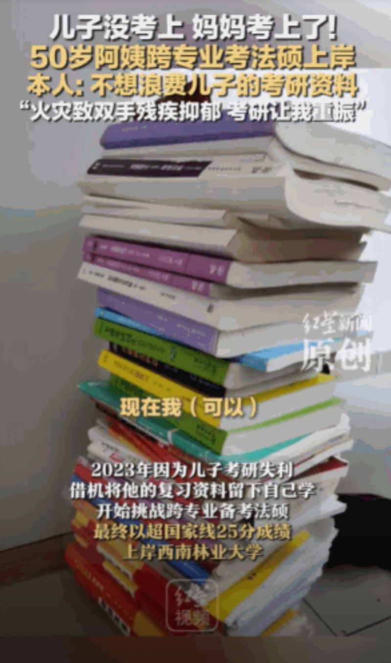 “别浪费了,给我留着吧。” 阿姨把资料抱回房间,起初只是想随便看看,没成想越看越入迷,尤其是法律相关的内容,和她之前学得有相通之处。她跟儿子说想试试考研,儿子当时就皱起了眉:“妈,您都 50 了,手还不方便,折腾这干啥?” 阿姨没吭声,当晚就把书摊在桌上开始规划复习计划。
