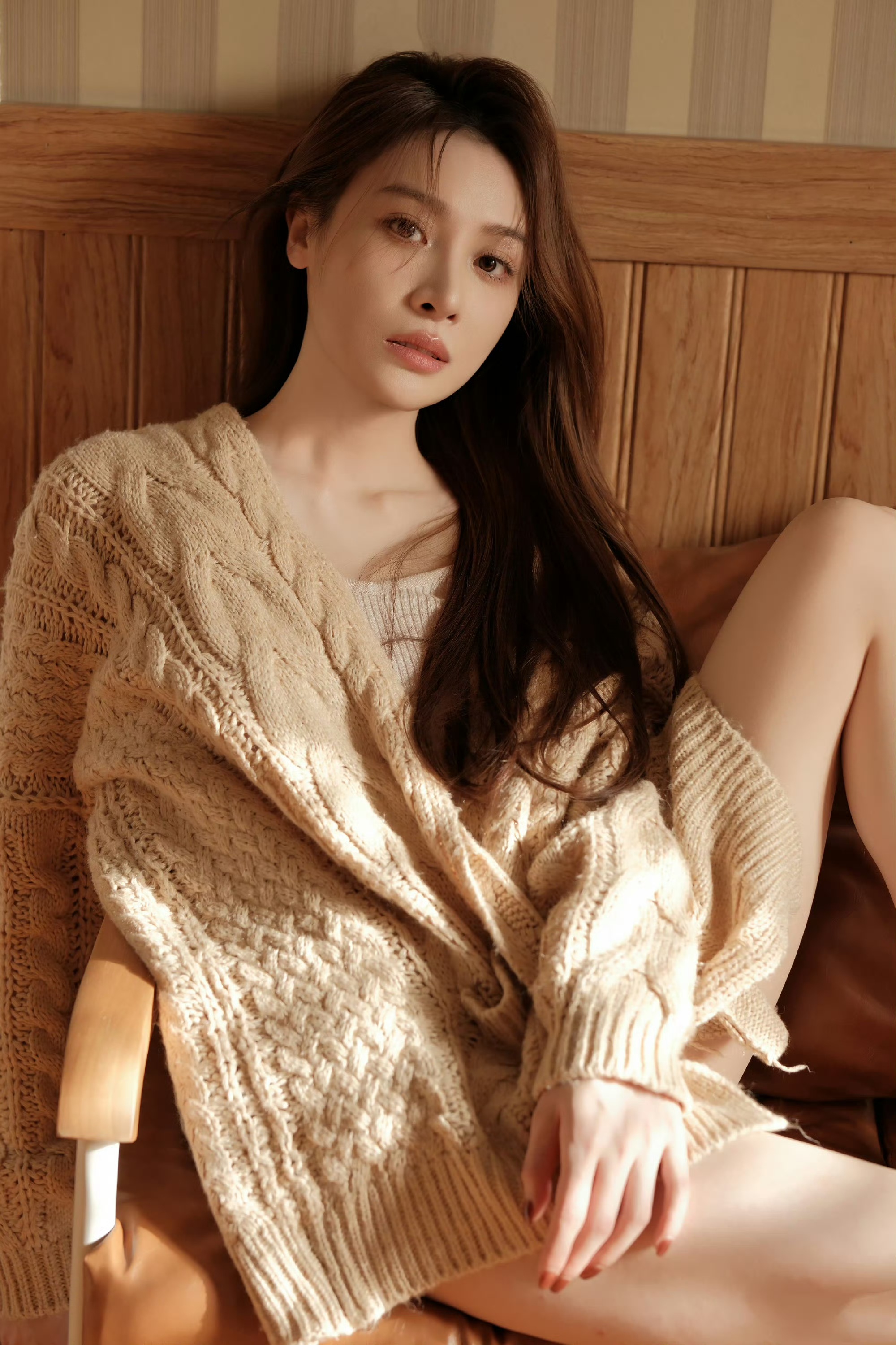 被隆妮美到失语!米色开衫把颜值身材氛围拉满
