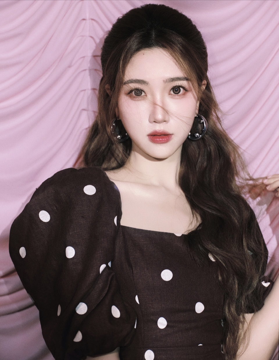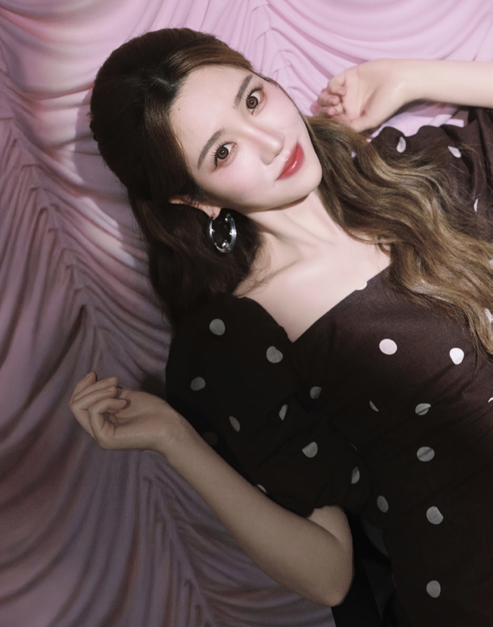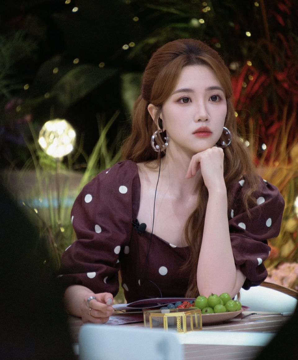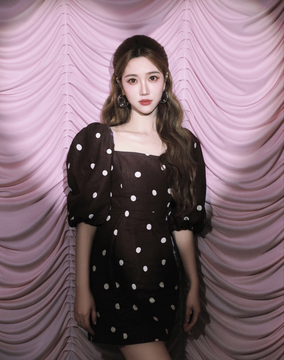 张纯烨深棕波点裙,身材曲线复古颜值双在线,想焊死在她衣柜