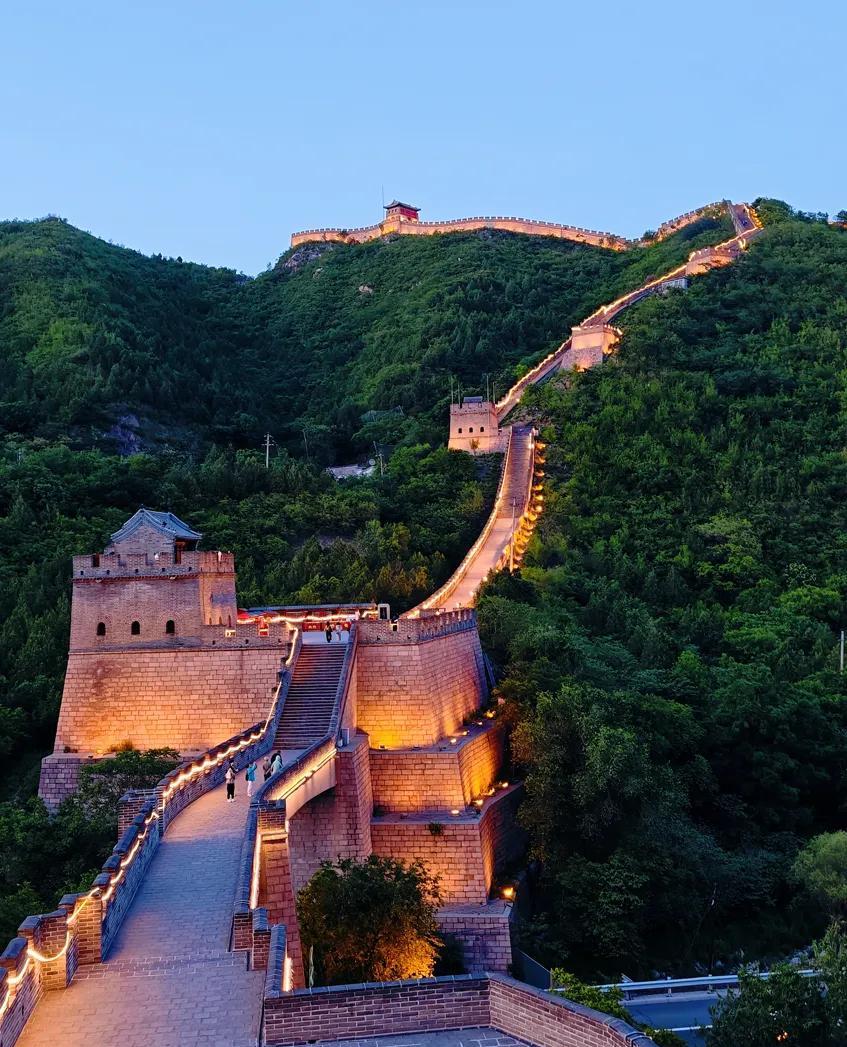 夜幕灯光下的居庸关长城 距北京市区60公里的居庸关长城,是京北长城沿线上的著名古关城,也是北京北面的门户,有着“一夫当关,万夫莫开”的雄伟气势。 修建在长达15公里山谷间的居庸关长城,地形险要,山峦重叠,树木葱郁,山花烂漫,景色壮丽,远在800年前的金代,就以“居庸叠翠”之美,被列为燕京八景之一。 夜幕降临,华灯初上,古老的居庸关长城在夜色阑珊的灯光下展现出新的魅力!长城上的城楼、云台与山脊轮廓,随着长城上灯带的层层递进,灯光沿着长城的曲线蜿蜒于群山之中,夜色中静谧的居庸关长城宛如一条金色巨龙横亘于山脊之上,与夜色星空遥相呼应,唯美画面让古老长城显得格外巍峨壮丽。 夜色灯光下的居庸关古长城,烽火台的轮廓唯美壮丽,长城不再是凝固的历史,而是一场流动的时光盛宴,夜游灯火阑珊的居庸关古长城,是奔赴一场跨越时空的浪漫! #记录我的2025#
