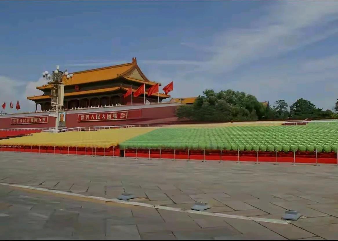 离我们国家大阅兵的日子越来越近了,看到天安门城楼修复一新,两旁安装完观礼台,真是