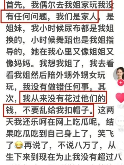 郑恺小姨子气愤发声了,谁看见人家用姐夫的钱买八万包包了。苗艺博说“长这么大,别说八万的包,8千的包我都没背过,只听说过天上掉馅饼,没听说过天上掉包包。”郑恺岳父母在闺女家是给带孩子,人家不是来享清福的,把自己孩子养大了。还要给闺女养孩子,已经够辛苦了,人家不可能出了力在出钱吧!女婿给的卡用在日常开销。养几个孩子得吃得喝吧!辛苦付出还造人家谣,真是让人哭笑不得。难怪郑恺和小姨子都出来发声了,这造谣造的都上热搜了。一家人实在看不下去了,在不出来解释,指不定又胡乱编造啥剧情了。
