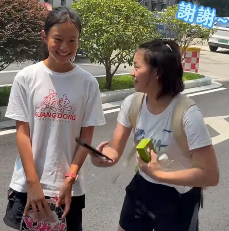 27日全红婵最新亮相广州二沙训练场,许久不公开露面的全红婵这次看着心态非常好,而且也明显瘦了好多!全红婵在训练场外遇见滑板运动员郑好好正在接受媒体访问时,全红婵还直接秒变粉丝欣喜上前询问,“可以跟你合照吗?”,随后拿出手机愉快的自拍合影了,不远处还有全红婵的师兄谢思埸等人在等她,全红婵合完影也飞快地逃跑了,貌似很怕这群记者要采访她!
