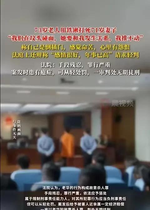 根据8月26日的报道,河南73 岁的老华(化名)打小就好强,年轻时却因家庭条件不好,成了 “倒插门”,入赘后和71岁的阿美(化名)重组家庭。这些年,村里人的眼光、生活里的琐碎,像细沙慢慢积在他心里,磨出怨恨的棱角,让他性子愈发执拗又压抑。 2024年5月事发当天,老华和阿美在坟头撞见。阿美突然凑上来,要和他亲近,老华瞬间脑袋 “嗡” 的一声。他打心眼里觉得,在坟头干这事儿,传出去能让人把他家脊梁骨戳烂,赶紧伸手推搡。 可阿美力气不算小,他越慌越使不上劲,满心都是 “完了,要被人看笑话” 的绝望。 这时老华也不知道哪根弦突然崩断,瞅见地上的菜刀、铁锨,脑子一热,抄起家伙就朝阿美招呼。一下又一下,动作越来越狠,等回过神,阿美已经没了气息。他呆在原地,后知后觉的恐惧顺着脊梁往上爬,浑身止不住地抖。 村里有人路过看到这场景马上就报了警。很快,警察来了,把老华带走。法医鉴定,老华作案时确实犯了癔症,这病让他没办法完全控制自己行为,属于限制刑事责任能力人。 最后,法院一审判了老华无期徒刑,还剥夺政治权利终身 。老华家后来给阿美亲属赔了些钱,想多少弥补点过错,可两条人命的事儿,哪是赔钱能消弭的。 事儿传到网上,网友炸开了锅。 也有人念叨:“这个女人及父母肯定这些年对上门女婿太不好了,才有今天下场。家人一定要互相理解爱护体贴。” 还有人疑惑:“癔症真能影响判刑?要是普通人犯事,是不是也能这么论?” 这事儿,把老年夫妻的情感矛盾、心理隐疾,还有法律对特殊病症犯罪的考量,全摊到了明面上。老华一辈子的憋屈,阿美突然的行为,癔症的影响,法律的判定,每一环都缠成了死结。到底是家庭积怨的爆发,还是疾病引发的悲剧,没人能说清。 但这起案子,也给大伙提了个醒,甭管年纪多大,心里的坎得早疏通,身边人的异常也得多留意,不然好好的日子,说不定就毁在一瞬间。 你说这事儿,到底该咋看?评论区唠唠呗 。