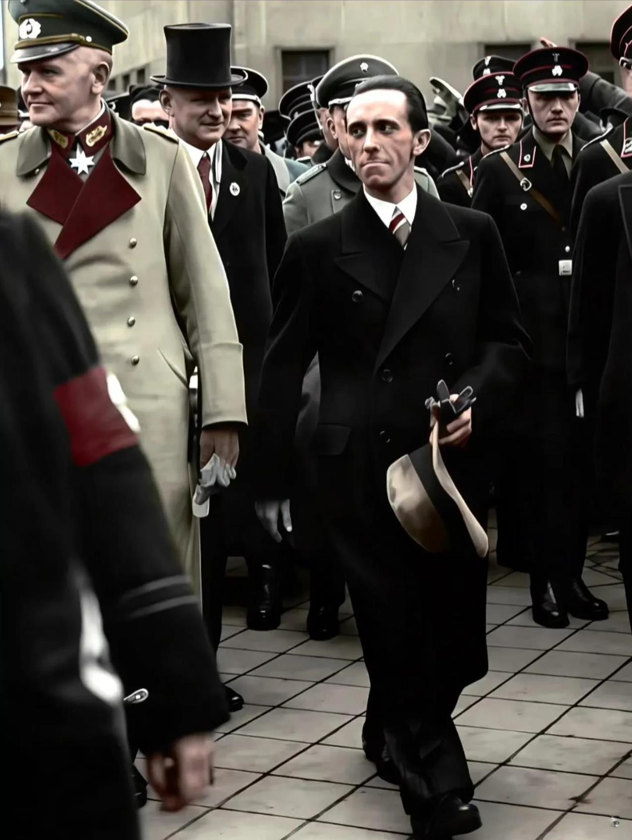 二战时期希特勒的忠实追随者,德国唯一一个身残志坚,读完了七所大学的德国宣传部长。 保罗.约瑟夫·戈培尔在二战前先后就读于多所德国大学,其中包括科隆大学、法兰克福大学、波恩大学、慕尼黑大学、弗莱堡大学、乌兹堡大学、海德堡大学。 他出生于1897年10月29日,7岁时得了小儿麻痹症,导致左脚肌肉萎缩短了一截,走起路来一瘸一拐的。就是这么一个身体残疾的人,凭借自己的努力和聪明才智成为德国政治家、演讲家、被称为“宣传的天才”、“纳粹喉舌”,他以铁腕手段捍卫希特勒政权和维持第三帝国的体制,被认为是“创造希特勒的人”。 1945年4月30日希特勒自杀,并任命戈培尔为德国总理,第二天即1945年5月1日8点,戈培尔先毒自己死的6个孩子,最小的才2岁最大的14岁,随后与妻子在帝国总理府地下室饮弹自尽,享年48岁。#牢记历史爱我中华# #分享真实的历史#