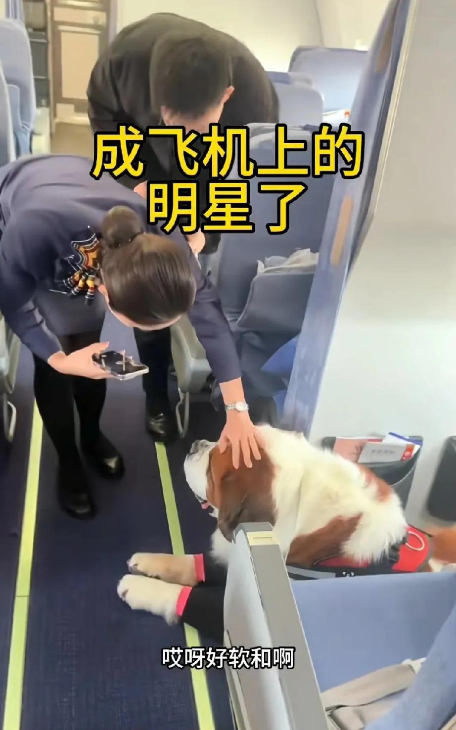 狗狗刚一上飞机,就发现自己的座位被人抢占了,于是它就赖在过道不走了。 是什么样的狗狗,它可以被特许登上飞机? 很多网友都感到非常的好奇。 而这种狗狗叫圣伯纳犬,它能够被特许上飞机的原因,主要是它被人们认定为精神抚慰犬或导听犬,在经过专业训练并符合航空公司规定后,能够为乘客提供心理支持或辅助服务。 圣伯纳犬也长得非常的威武雄壮,还特别漂亮,只要一上飞机就会受到像明星般的欢迎和关注。 就连很多空姐,都会争着与它拍照合影留念,还会禁不住想用手去抚摸它。 集百般娇宠于一身的狗狗,你想养上一只吗?