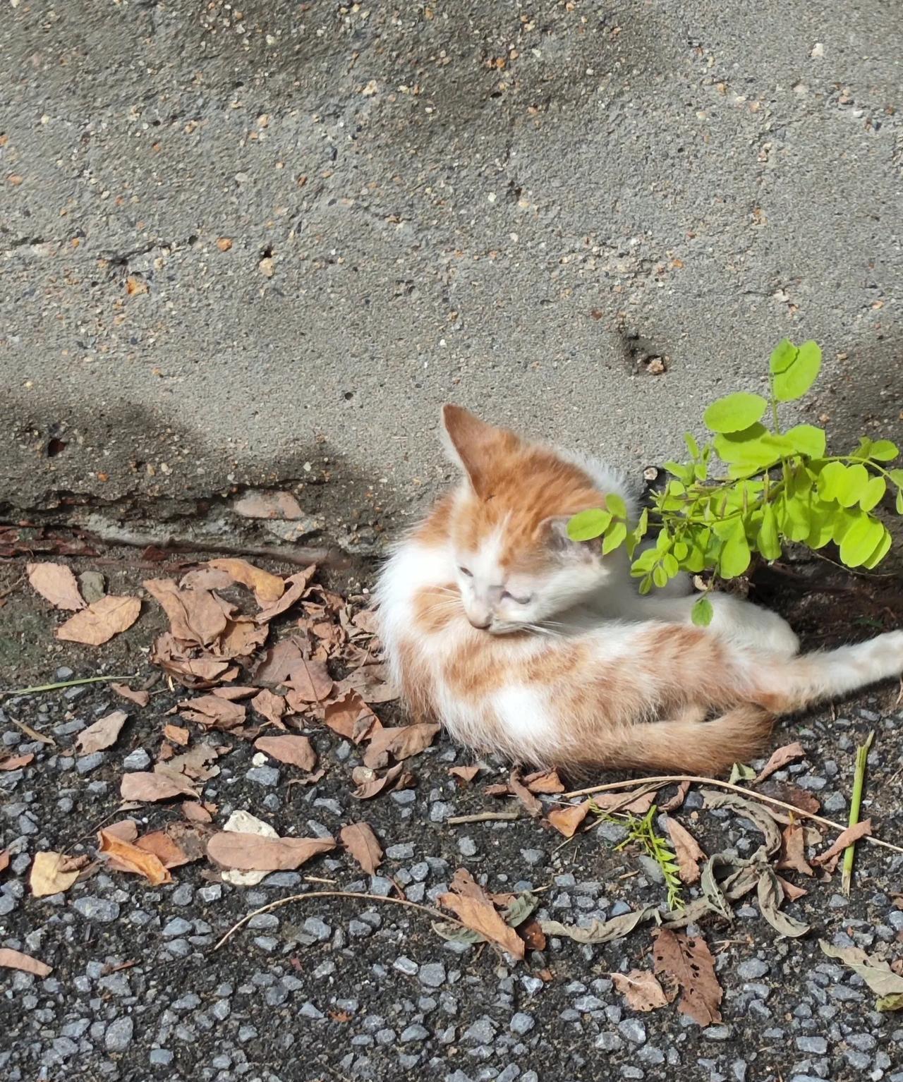 这野猫下崽了! 我们小区的这个墙外是一块闲置十多年的荒地,也没有什么开发商来盖楼