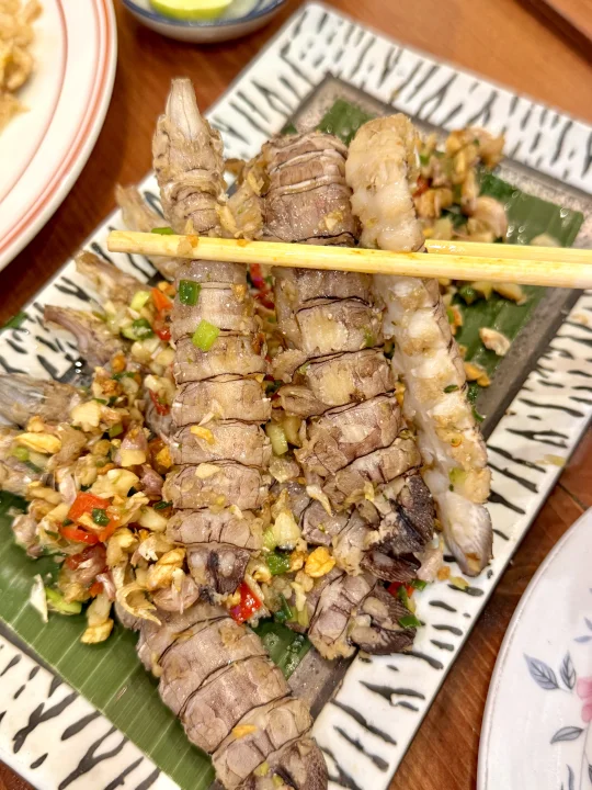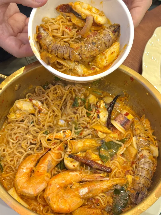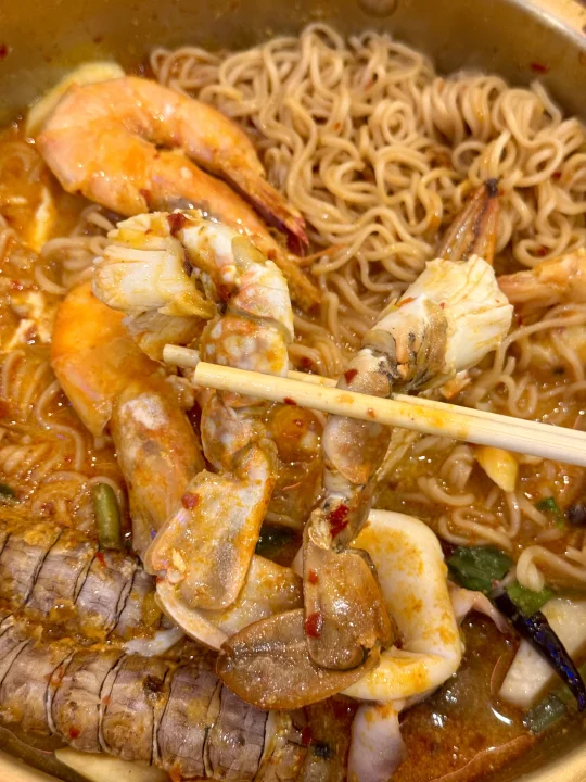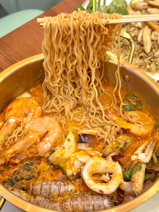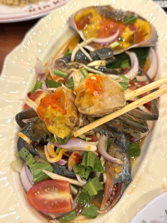 我发誓这绝对是我在在曼谷吃到过最最好吃的冬阴功妈妈面和蟹肉炒蛋!!相信我家人们!真的比朱拉美食街那个网红妈妈面好吃不知道多少倍!全是泰国本地人去吃!没有一个中国游客! 他家的蟹肉炒饭也一绝!蟹肉饱满紧实!份量也贼多!2、3个人吃点个小份就够啦!大份的够5-6人吃!喜欢吃生腌的不要错过它家的生腌螃蟹🦀酸酸辣辣真的我一个人可以吃完一整盘!好吃哭了😭!蒜蓉空心菜和蒜炒皮皮虾盲点的也好好吃!我觉得他家属于盲点也不会踩雷的!观察了一下都是附近泰国本地人在吃!怪不得味道那么正宗!