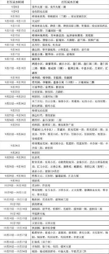 【#天津#这里将开始采暖打压试水】天津泰达津联热电有限公司拟于9月8日起对供热所辖各小区的采暖系统进行打压试水,用户家中需留人。打压试水计划时间安排表↓