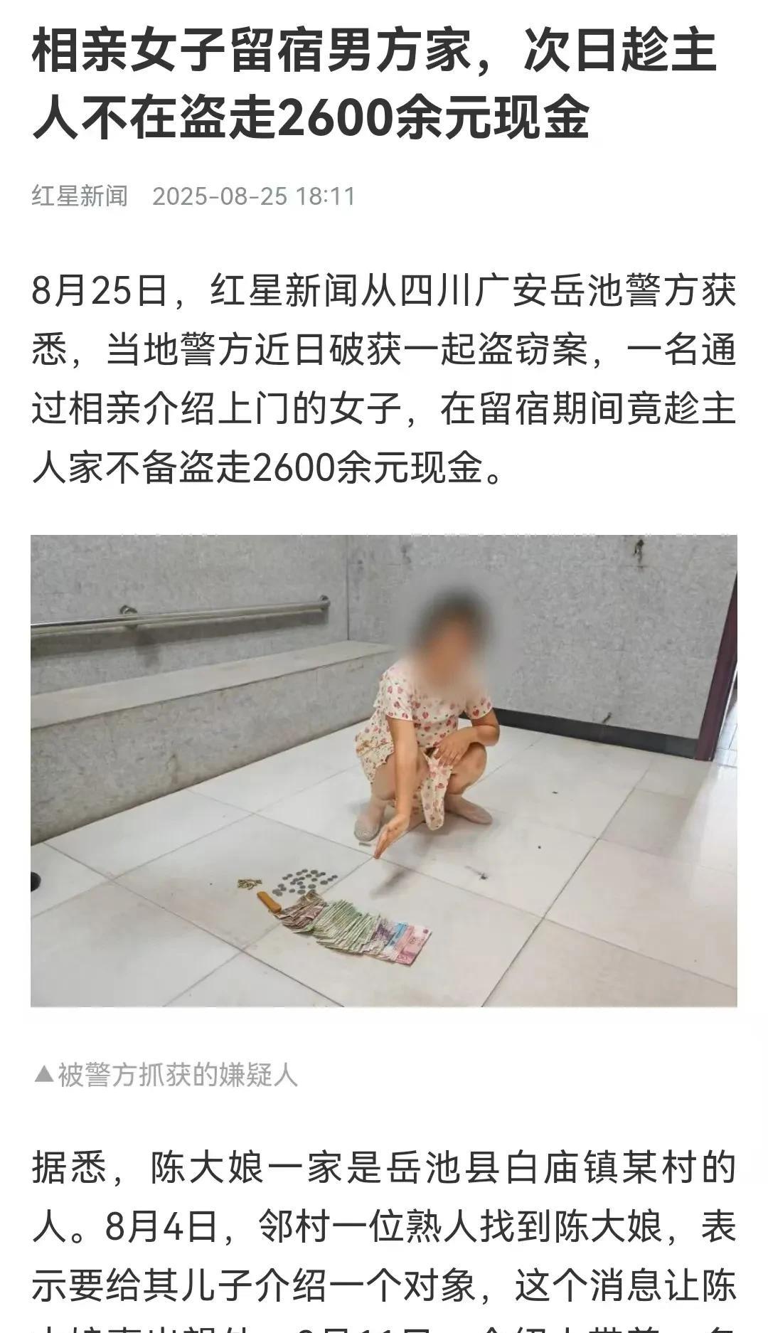 四川,大妈务农回家后发现柜子被人翻动过,心中大感不妙,于是慌忙打开柜子检查,发现自己经常拿来放证件和钱的挎包不见了。大妈心中一惊,不会是昨天相亲留宿的姑娘偷走了吧? 据红星新闻报道,当时陈大妈,回家的时候已经不早了,在外面工作了一天,早已经身心疲惫,结果回到家之后发现,柜门好像被人打开过。 当时陈大妈,还以为自己疲惫之下看花了,也也没有什么其他想法,心想这都什么年代了,哪里还会有小偷偷东西? 于是陈大妈便收拾收拾准备吃个饭,休息休息,晚上和远在外地的儿子打打电话 ,毕竟也老大不小了,让他和前天见过的姑娘好好联络联络。 毕竟自家儿子是个榆木脑袋,从小也没怎么和姑娘打过交道,这个当妈的可是得好好操心一下,不然以后还得打光棍。 到了晚上,给陈大娘介绍姑娘的老李。来陈大娘家串门,问陈大娘觉得姑娘怎么样?陈大娘觉得姑娘人还不错,晚上在他家吃饭的时候,还给陈大娘帮了忙,陈大娘说这以后过门也是一个贤惠的好媳妇。 老李心中在想,这都留人家姑娘在自家过夜了,应该挺满意姑娘的。然后就和陈大娘说,这姑娘家人也挺好的,就是家里面可能经济不太好,从小就比较穷。 陈大娘觉得家里穷也没什么,主要人家姑娘还是比较好的,心灵手巧又贤惠,就是今天早上还想留姑娘家再吃个饭,但早上起来的时候,姑娘家就已经走了。大娘觉得可能是小姑娘脸皮比较薄,可能不好意思就走了。 这个时候他儿子打来了视频,陈大娘还很高兴的和儿子说了今天的事情,说姑娘家在自家过夜了,应该是觉得咱家还不错。 然后大娘又和儿子说了,他晚上回来的时候觉得柜子被动过了,然后他儿子开玩笑的说,看来我妈在柜子里藏了好东西,让小偷都惦记了。 这让陈大娘心中突然咯噔一下,挂完电话后慌张的去检查了一下柜子。 这不检查还好,一检查吓一跳,陈大娘发现自己平常用来放钱和证件的挎包不见了,陈大娘心中大感不妙。真的给儿子说中了,给贼惦记了。 趁大娘当天晚上便打了110报了警,经过民警的走访调查,最终将目光锁定在那天来大娘家过夜的姑娘朱某身上。 民警将嫌疑人正式抓捕时,大娘还是不敢相信,那么好的姑娘竟然是偷走她挎包的人。 从法律的角度,我们应该如何看待这件事情呢? 一、朱某行为明确构成盗窃罪,需承担刑事责任。 盗窃罪是指以非法占有为目的,盗窃公私财物数额较大,或者多次盗窃、入户盗窃、携带凶器盗窃、扒窃的行为。 《刑法》第二百六十四条规定,盗窃公私财物,数额较大的,或者多次盗窃、入户盗窃、携带凶器盗窃、扒窃的,处三年以下有期徒刑、拘役或者管制,并处或者单处罚金。 根据《<关于常见犯罪量刑指导意见(试行)>实施细则(试行)》规定,在四川省,盗窃金额达到1600元的就会被认定为盗窃数额较大。 朱某趁陈大娘夫妇外出务农,擅自打开她家的柜子,窃取衣柜内装有2600元现金及证件的挎包,且盗窃金额已经达到了数额较大的标准,构成盗窃罪。 因此,朱某的行为已经不是简单的治安违法了,等待她的将是《刑法》的处罚,值得注意的是,一旦朱某被处罚,以后子女考公等都将受到影响。