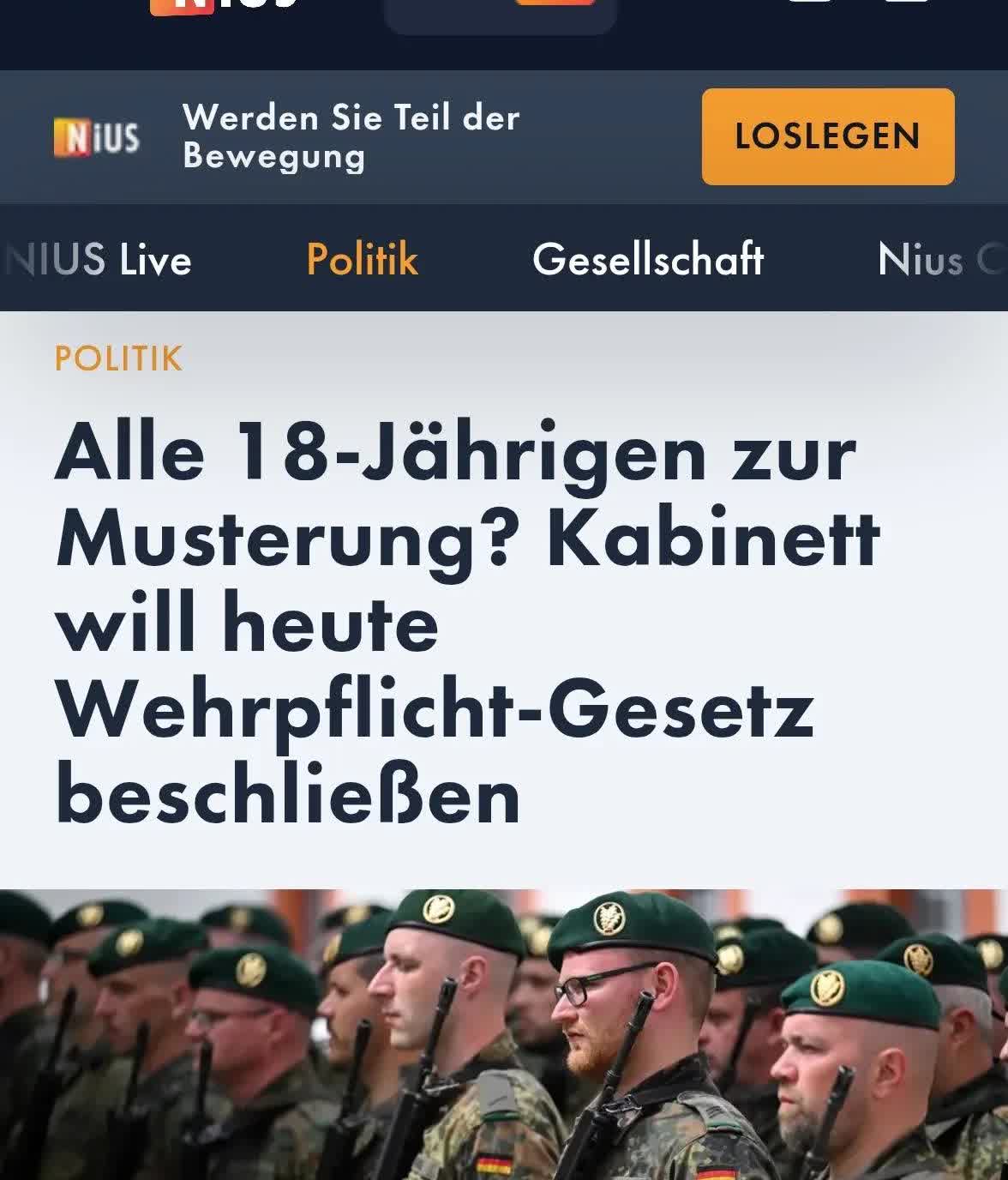 德国年轻人的好日子或到头了: 德国防长提出的最新法案,要求所有拿着德国护照的18岁男性青年必须服兵役。该法案预计今天将获得通过。德国多家媒体争相报道。 全德国适龄男性青年将在2026年1月1日强制填写一份问卷,女性自愿填报,然后2027年7月1日起所有德国18岁男性强制服兵役。 德国这是准备再来一次嘛?