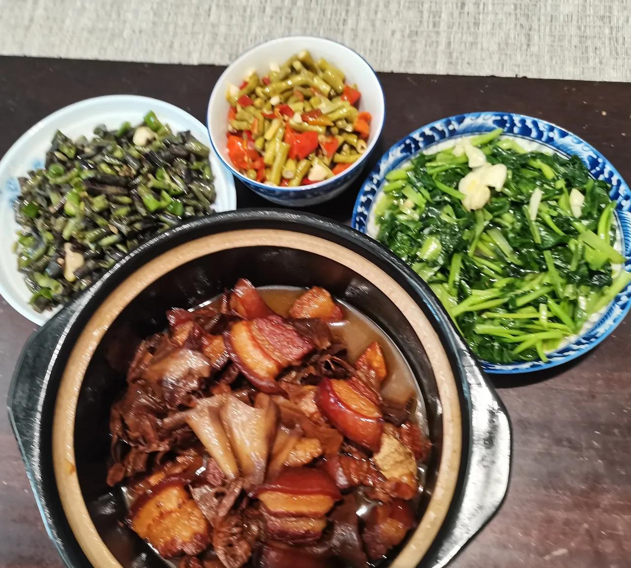 台湾友人想吃肉焖笋干外加小白菜说是台湾新鲜蔬菜卖到100元一斤 最近她去了浙江金华、义乌那边游玩,估计是吃了红烧肉焖笋干,就爱上这一口了,回来就嚷嚷着要吃红烧五花肉炖笋干,这不中午就给安排上了。 我的妈呀!那叫一个吃得香啊!一边吃饭一边告诉我,台风过后,台湾的蔬菜价格疯涨,空心菜、小白菜、苋菜类的蔬菜,目前要人民币100元一斤,她在内地买这些蔬菜才花到2元钱,她跟那边亲戚朋友视频说这些的时候,那边人一片惊呼,不敢相信呢。 是啊,我们这边风调雨顺,国泰民安,价格平稳,社会安定团结,人民安居乐业呢。我们这边还物产丰富,价廉物美,想吃啥吃啥。 她说最近台湾那边又地震了,看来岛上自然灾害频发,也是导致物价飞涨的最主要原因之一。 希望同胞们能战胜自然灾害,建设家园,恢复生产生活,跟我们一样过上幸福太平的日子! #笋干煮肉# #原切笋干炒肉# #笋干菜焖肉# #秋日生活打卡季#