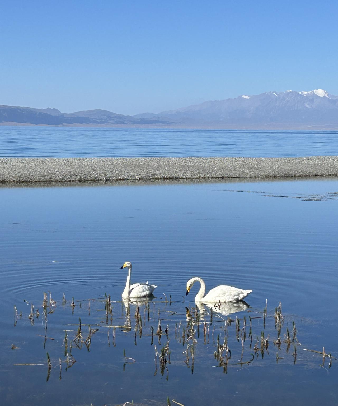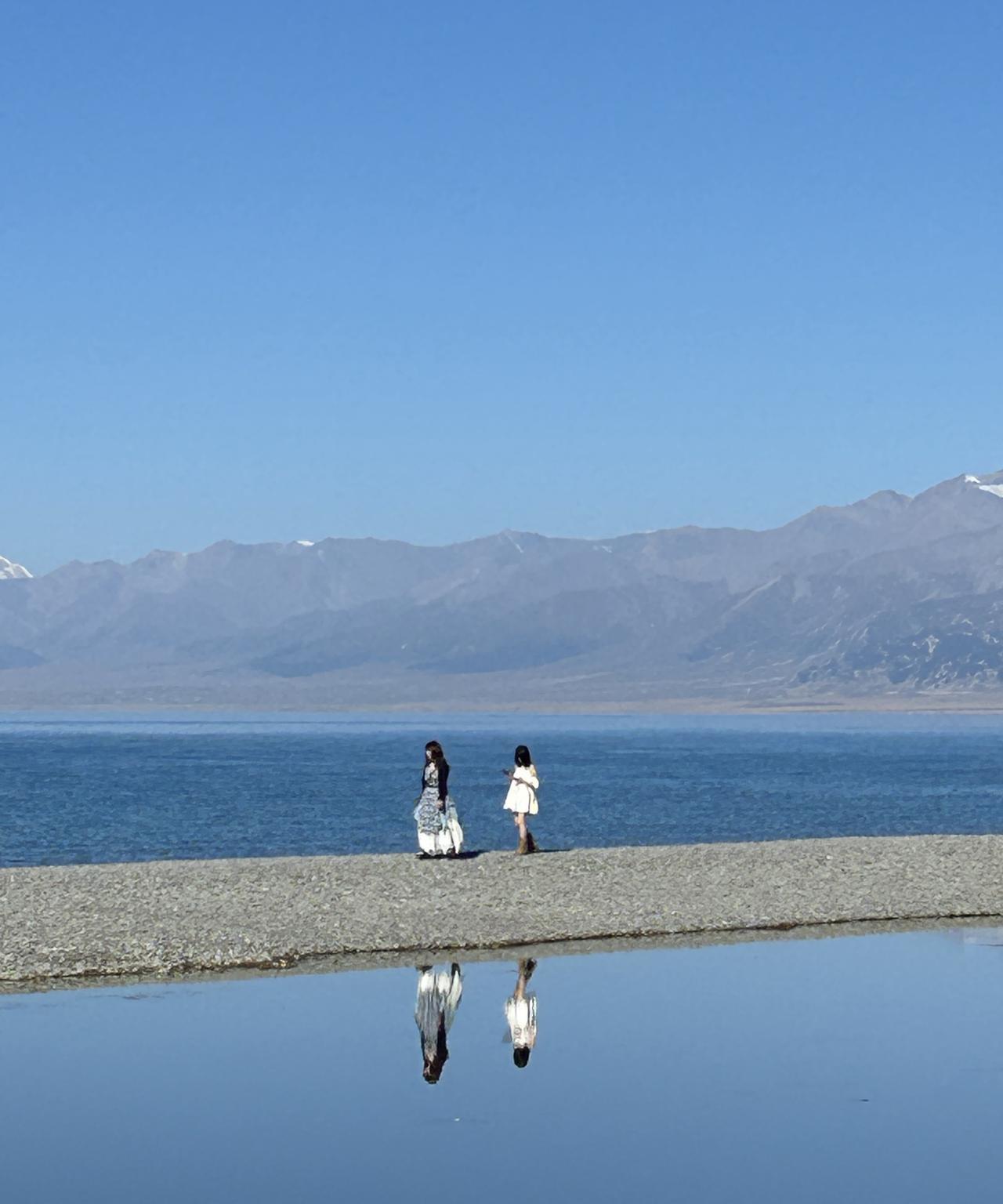 天山高原一幽蓝 赛里木湖净心田 放飞自我腾空跃 感受美好勿等闲