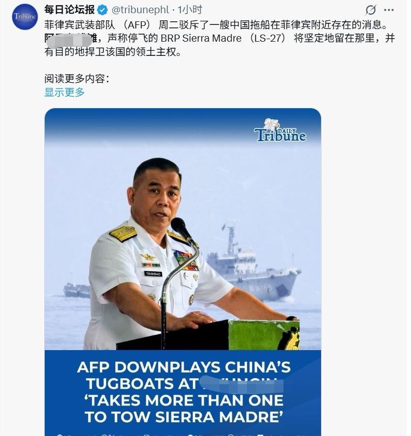 【30小时对峙后菲舰狼狈折返,中国拖船已扼守咽喉,赖在仁爱礁的菲“马德雷山”号,