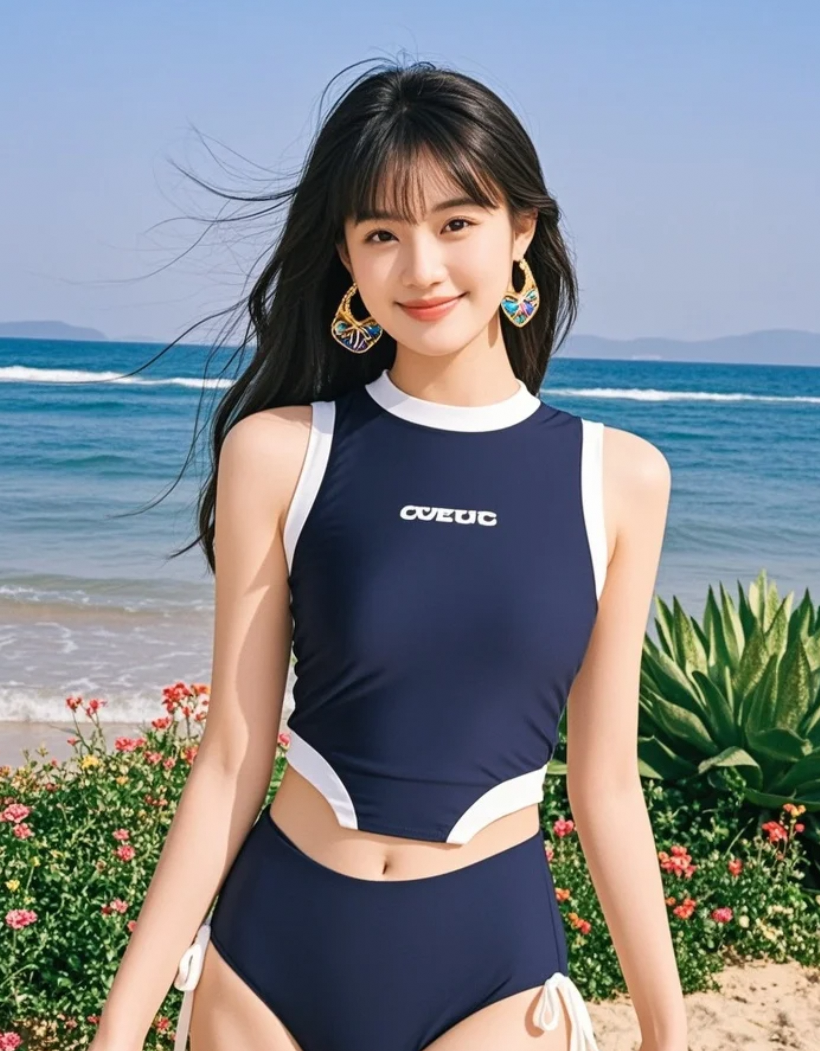 海浪轻拍岸边,应和着她内心的宁静节拍