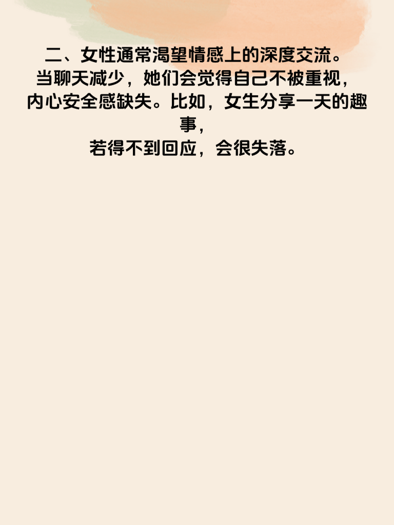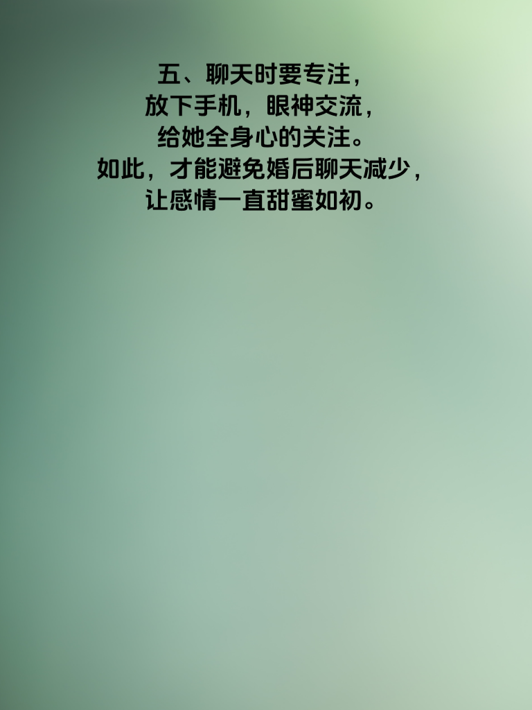 一、婚后聊天减少,看似平常,实则暗藏危机。曾经无话不谈的两人,婚后却渐渐没了那份热情与耐心,这往往是关系急转直下的信号。 二、女性通常渴望情感上的深度交流。当聊天减少,她们会觉得自己不被重视,内心安全感缺失。比如,女生分享一天的趣事,若得不到回应,会很失落。 三、男生要明白,婚后聊天是维持感情的关键。每天哪怕抽出几分钟,认真倾听她的喜怒哀乐,让她感受到你在用心陪伴。 四、可以从一些小事开启话题,像问问她今天吃了什么好吃的,工作上有没有遇到好玩的事儿。别总是只谈大事,生活中的点滴更能拉近彼此距离。 五、聊天时要专注,放下手机,眼神交流,给她全身心的关注。如此,才能避免婚后聊天减少,让感情一直甜蜜如初。