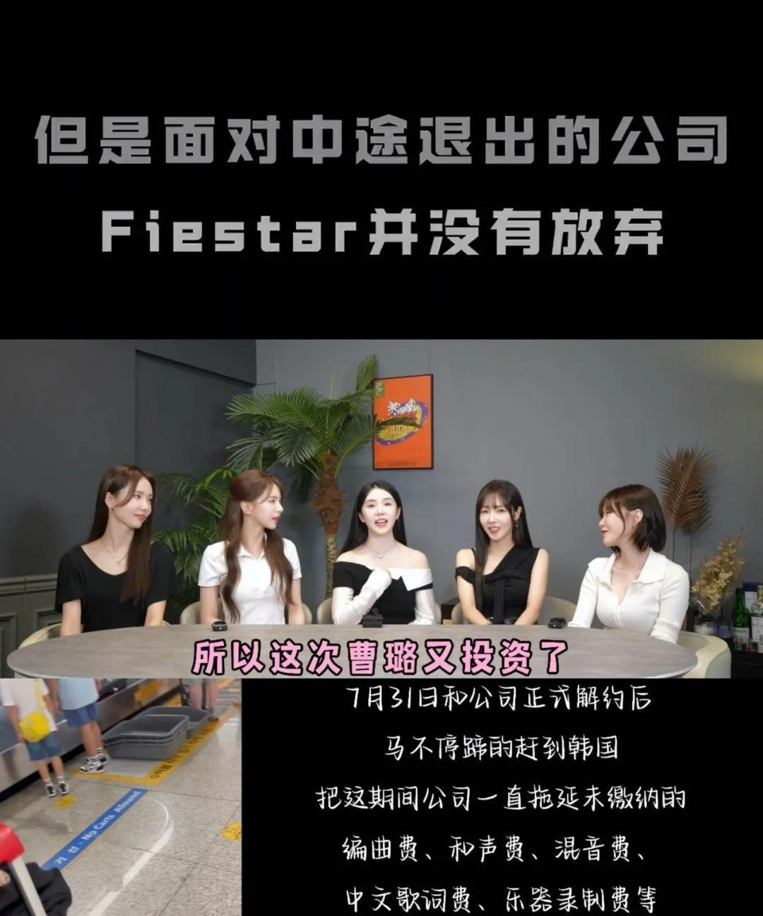 曹璐更新vlog,宣布刚签约新经纪公司半年正在准备回归的FIESTAR,因公司原因遗憾解约了。 今年二月和新经纪公司签约后,曹璐打包行李去往韩国,原计划五六月回归,且已完成了编曲、录音、和排练。面对公司的中途退出,曹璐再次自掏腰包,结清编曲、录制等所有制作费用,重新编曲作词拍摄,新版《VISTA》将于8月31日上线。成员们表示新歌非常兴奋,充满了力量。 你能想到甚至有两个队员已经结婚的情况下,几个成年人时隔多年又聚在一起重新开始做爱豆做舞台吗?曹璐真的很不容易,这两年来顶着压力直播,增加曝.光机会,坚持有毅力,为梦想奋斗着,是真的爱舞台爱队友啊! 自己出钱完成梦想也没什么,好歹有人通过这个知道她们了。不嘲笑有梦想的人。