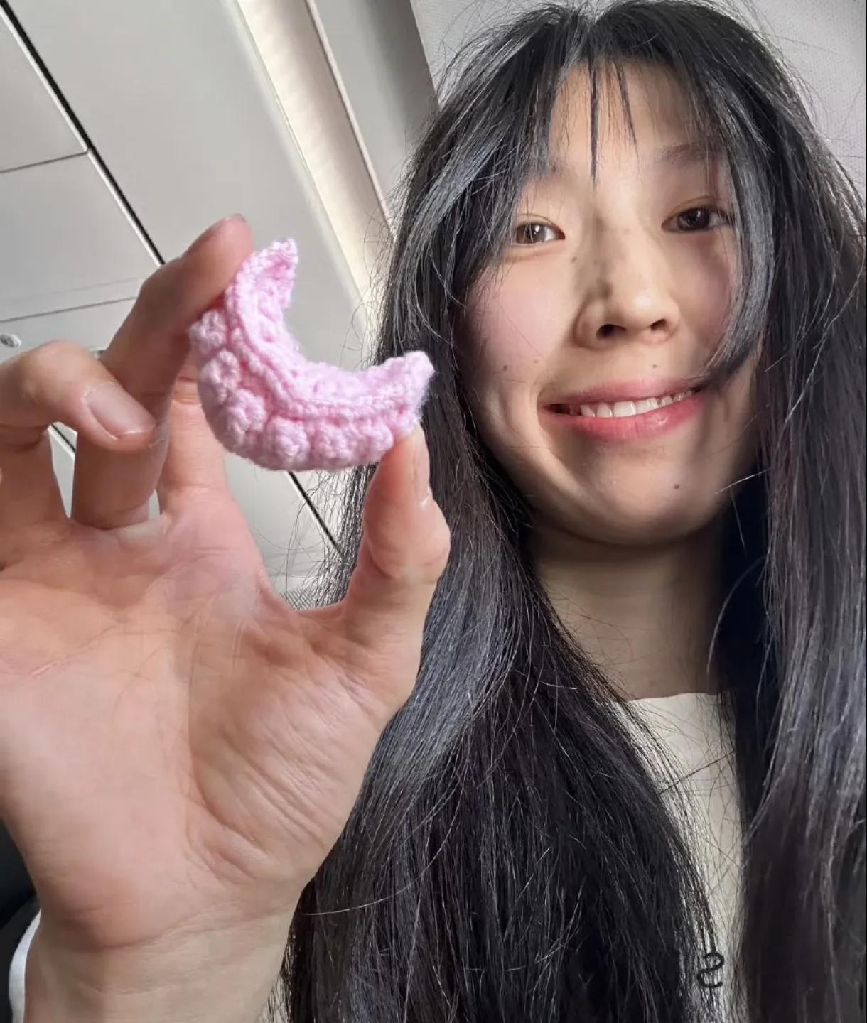 球场上叱咤风云的吴梦洁也是心灵手巧的女红爱好者,她自己勾了毛线饺子、毛线排球等小