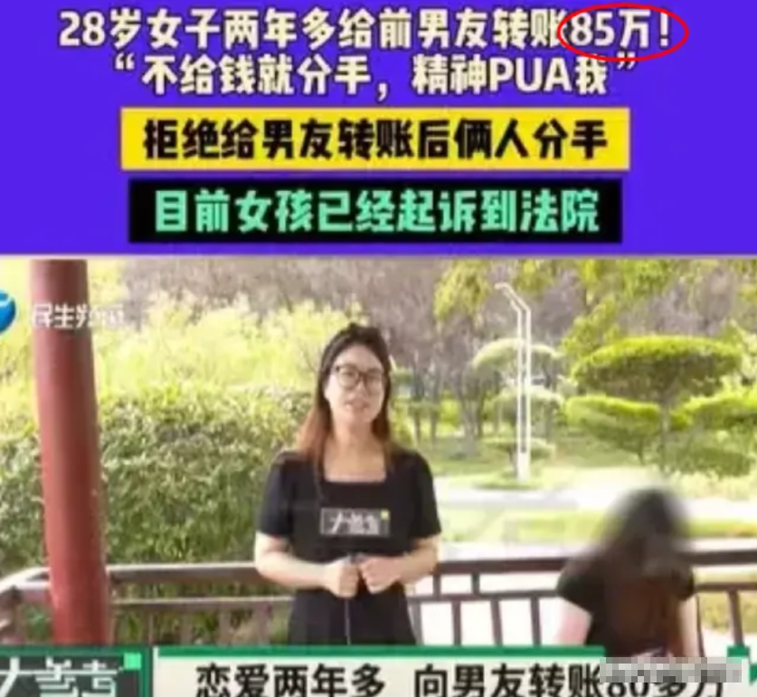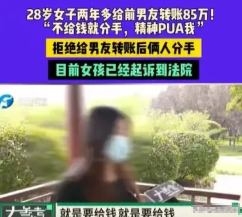 大参考八月二十七号报道了这则女子和男友恋爱期间,一直被男友PUA,两年花了85万后意识到不对劲,想找对方要钱遭拒的新闻,事情的经过是这样的。