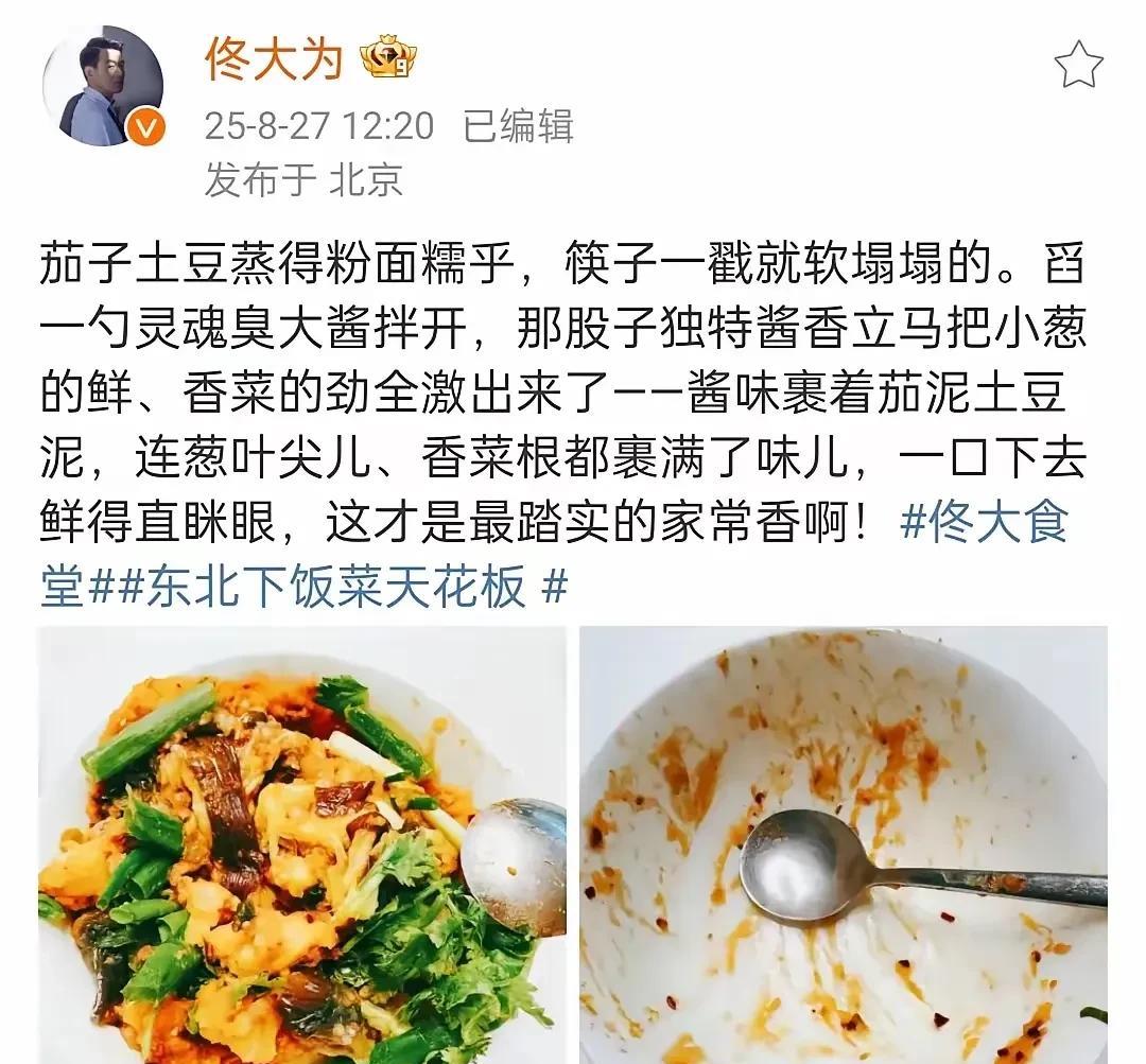 佟大为的东北菜,除了东北人都接受不了吧。 看起来有生有熟,黏糊糊,没有食欲。 其实这菜真的很香,一家一个味道,茄子,土豆,大葱,香菜真的可以多吃两碗饭。 不是正宗东北人无法体会这种美味。