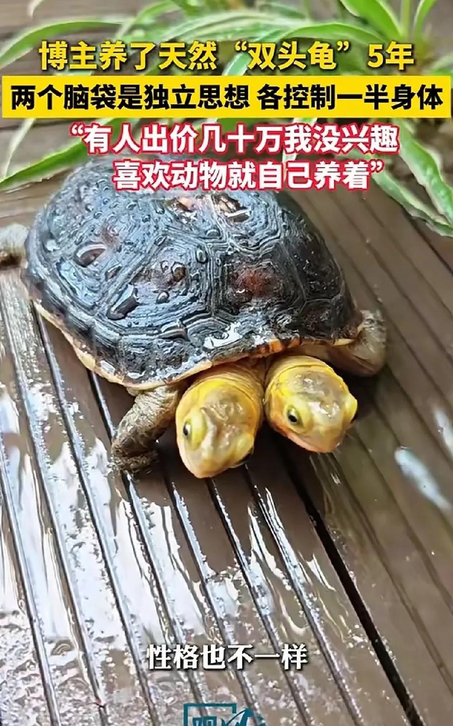 一男子竟然养出了双头乌龟,据说已经活了五年了,有人出价几十万,他都不愿意卖。 该