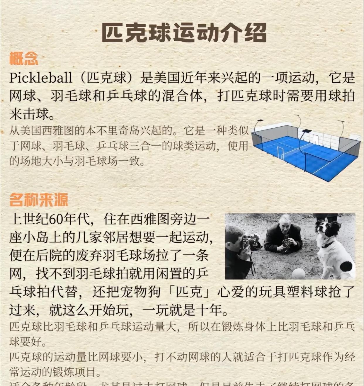 最近大咖明星喜欢玩的匹克球火起来了 上手贼快,10分钟学会。 匹克球被说是: -