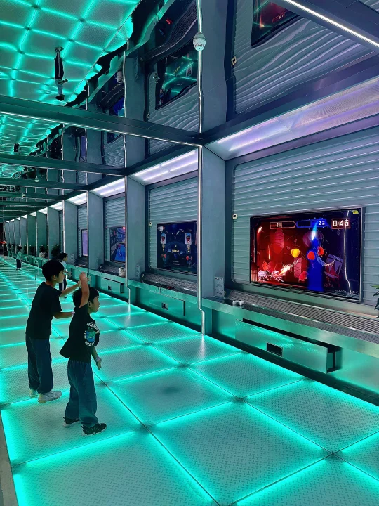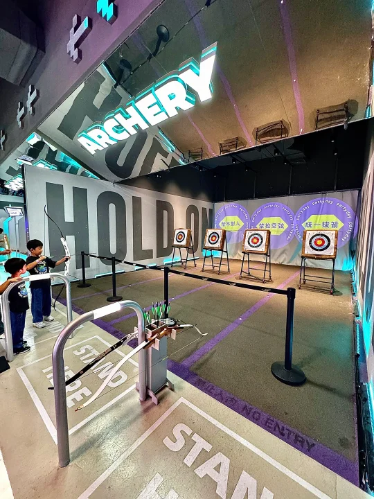 A 区有桌球🎱、飞镖🎯、射箭🏹、射击🔫、真人 CS、手柄游戏🎮、体感游戏🎰等各种项目,还有抓娃娃机(收费项目)和特色餐吧🍔,让你在尽情玩乐的同时也能享受美食的乐趣。