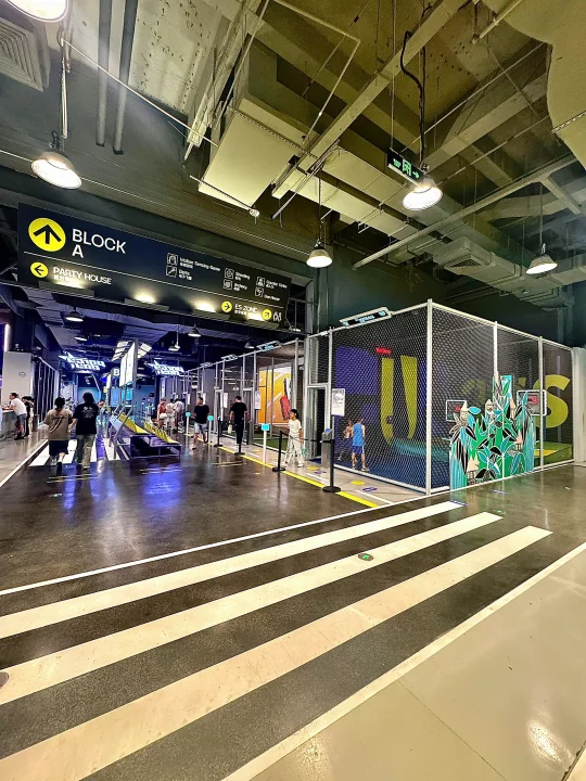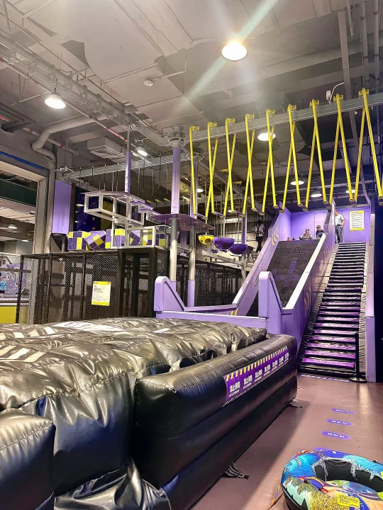 B 区是数字体育区,设有棒球⚾、足球⚽、高尔夫⛳、乒乓球🏓、篮球🏀等项目;室内蹦床区域则有各种蹦床、攀岩🧗♀️、高空漫步、高空滑索、梅花桩等刺激项目,让你尽情释放活力💪。