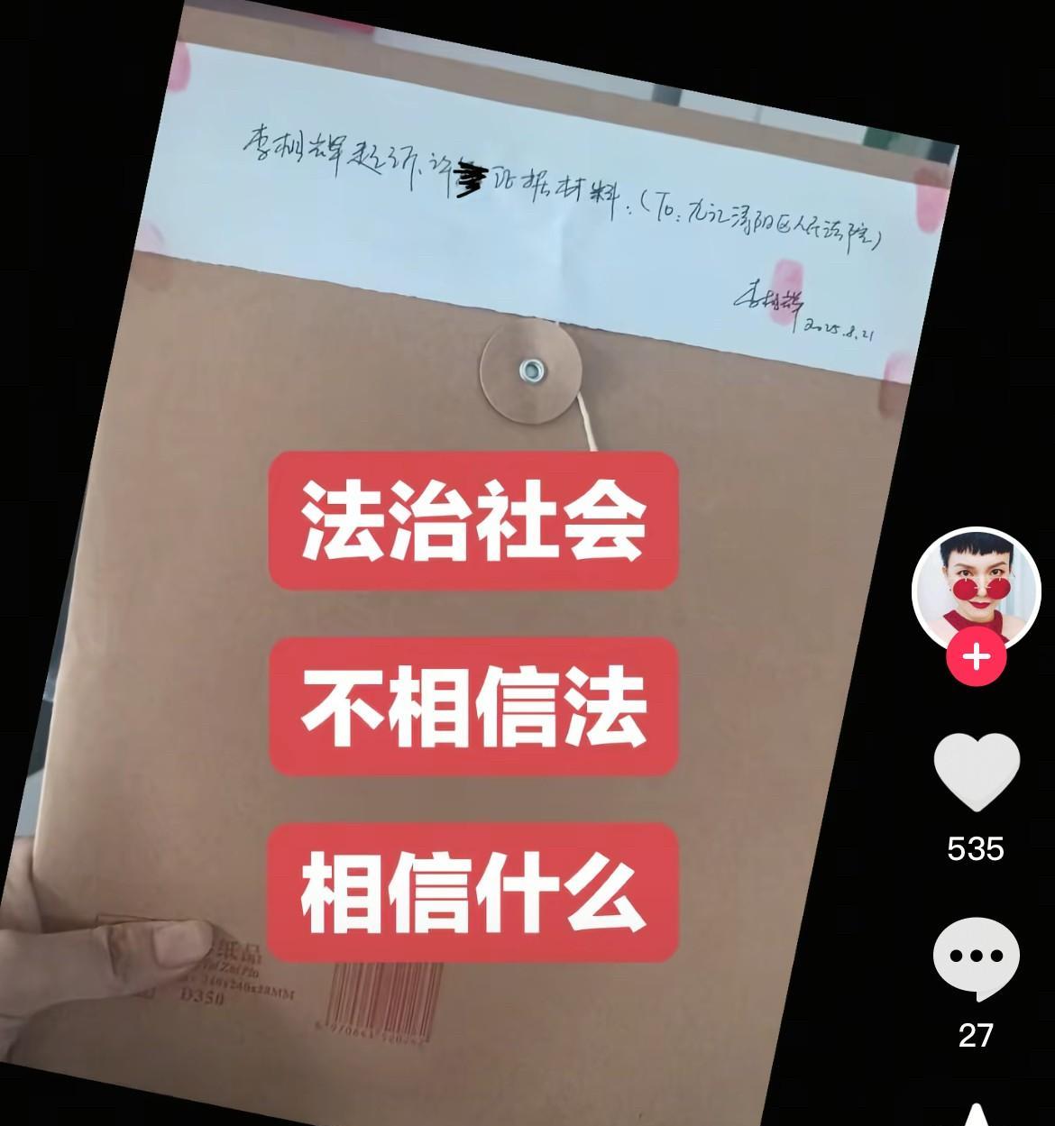 犀利大王,行动力满分! 起诉老许的证据材料寄到辖区法院了,但是这个材料感觉好久以前就看过了,是不是准备了多份?大王真是挺杠的,其实最开始许方主播挺多的,记得有个余秋水啊,当时被网暴的也不轻,但是人家彻底离开不谈这个破事了,也就消停了,自己的身体还是最重要的,为他别人不值得!#二八事件追踪#