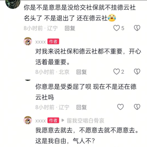 德云社对张文顺先生的家人怎么样,看宁少自己怎么说的。 一、郭老师和王董事长对我母亲不错。(宁少的母亲是张文顺先生的女儿张德燕女士)天桥德云社,茶水小吃的收款码是张德燕女士的,德云社场场观众也不少了,这笔收入也很客观了。 二、宁少,想回德云社,是可以演出,这就是特权。 说实话,宁少这人,还是不错的,说话讲理,哪怕对自己不利的,人家也是也不会瞎说,就是有点少爷脾气,可能有家底,也不在乎那点工资的。 说实在的,德云社的徒弟们对张德燕,肯定是很尊敬的,德云社对她,也会很关照。 但是,这份交情放宁少这,就淡很多,说白了,就是亲戚家孩子在这上班,你好好干,涨工资肯定也快,待遇也好,你不好好干,人家也得顾及公司的利益,面上过的去就行了,德云社里有关系的多了,都有特权,德云社还开吗。 #张文顺后人# #德云社对张文顺先生家人怎么样#