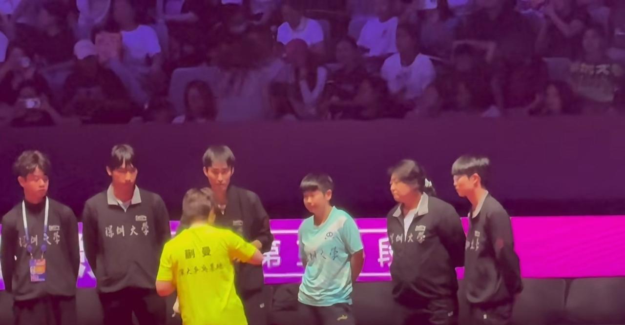 蒯曼今晚让二追三赢了张本美和。 今晚莎莎也热身了,大家以为她会上场,后来莎莎没上场打比赛,又当莎指导了,看到有网友说: “深大请孙颖莎把教练费给结一下。”确实莎莎在场外,局间大部分都是莎莎在说,第三局女单比赛蒯曼对张本美和,蒯曼是让二追三逆转赢了,看到局间莎莎先跟蒯曼说,然后张成教练也给蒯曼支招,之后莎莎继续指导蒯曼。最终深圳大学是3-0赢了成都高新若水居俱乐部。 莎莎真的是不上场打比赛,就在场外当教练,打女双的时候,莎莎比较松弛,她一直坐在深大教练的旁边,莎莎还低头吃了个东西,然后一直嚼啊嚼的,嚼了二三十下才吃完,太可爱了,真的有莎莎在场,觉得就很稳,现在覃予萱也成长了。 去年的时候大家说希望有人给莎莎凑分,今年莎莎不上场,她们三个也能赢,小将需要锻炼。莎莎以后要是当教练了,肯定也特别负责,不过还是只打比赛好,不希望莎莎当教练。