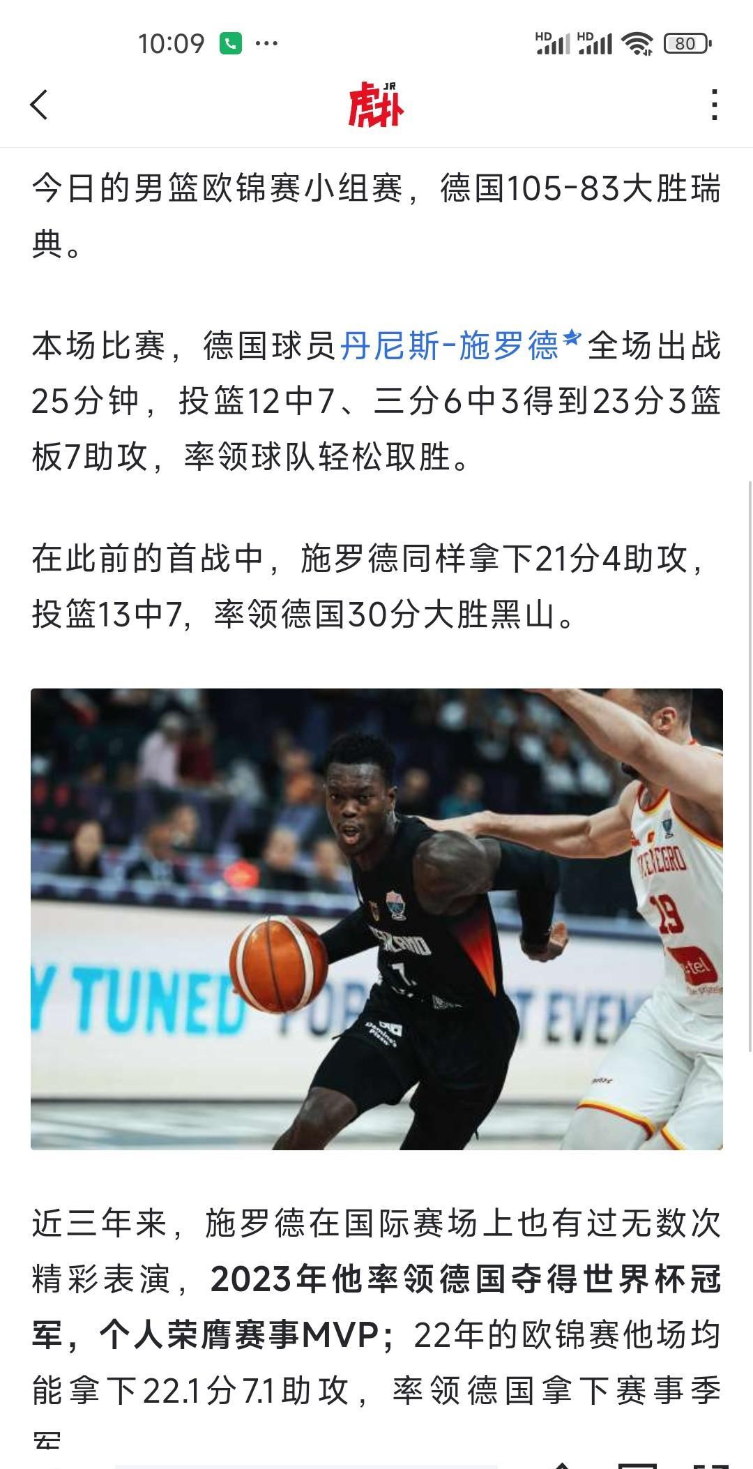 小黑施罗德在国际赛场上竟然那么强? 今日的男篮欧锦赛小黑出战25分钟,12中7三