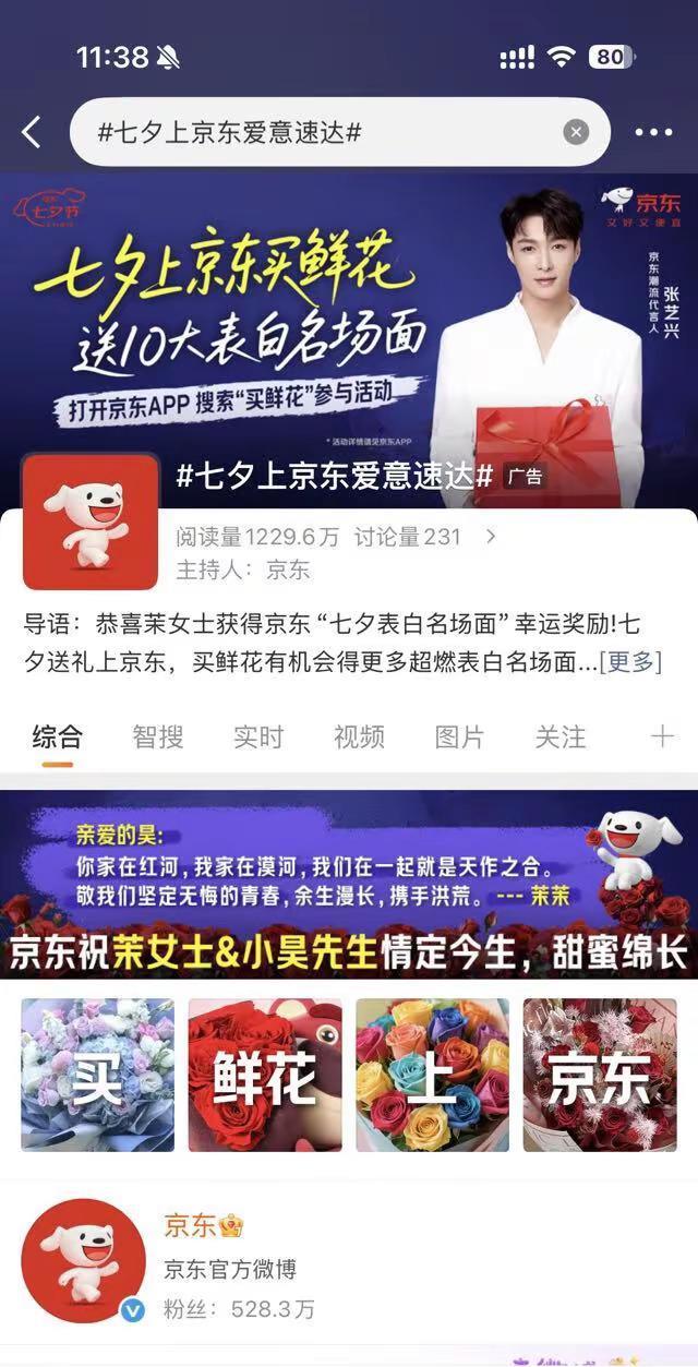 年轻人谈个恋爱恨不得得让全世界都知道,可是这很难呢。不过有的人真做到了,小伙为示爱登上微博热搜,注意,他可不是什么名人呐!怎么做到的?是JD帮助实现的。JD在七夕前夕推出了“买鲜花送名场面活动”,七夕到京东买鲜花,有机会解锁属于你的专属浪漫,把你表白变成名场面,让这份爱被狠狠的记住,也让全世界的人都看见,共同祝福你们。#七夕送礼上京东 #京东七夕买鲜花送表白名场面
