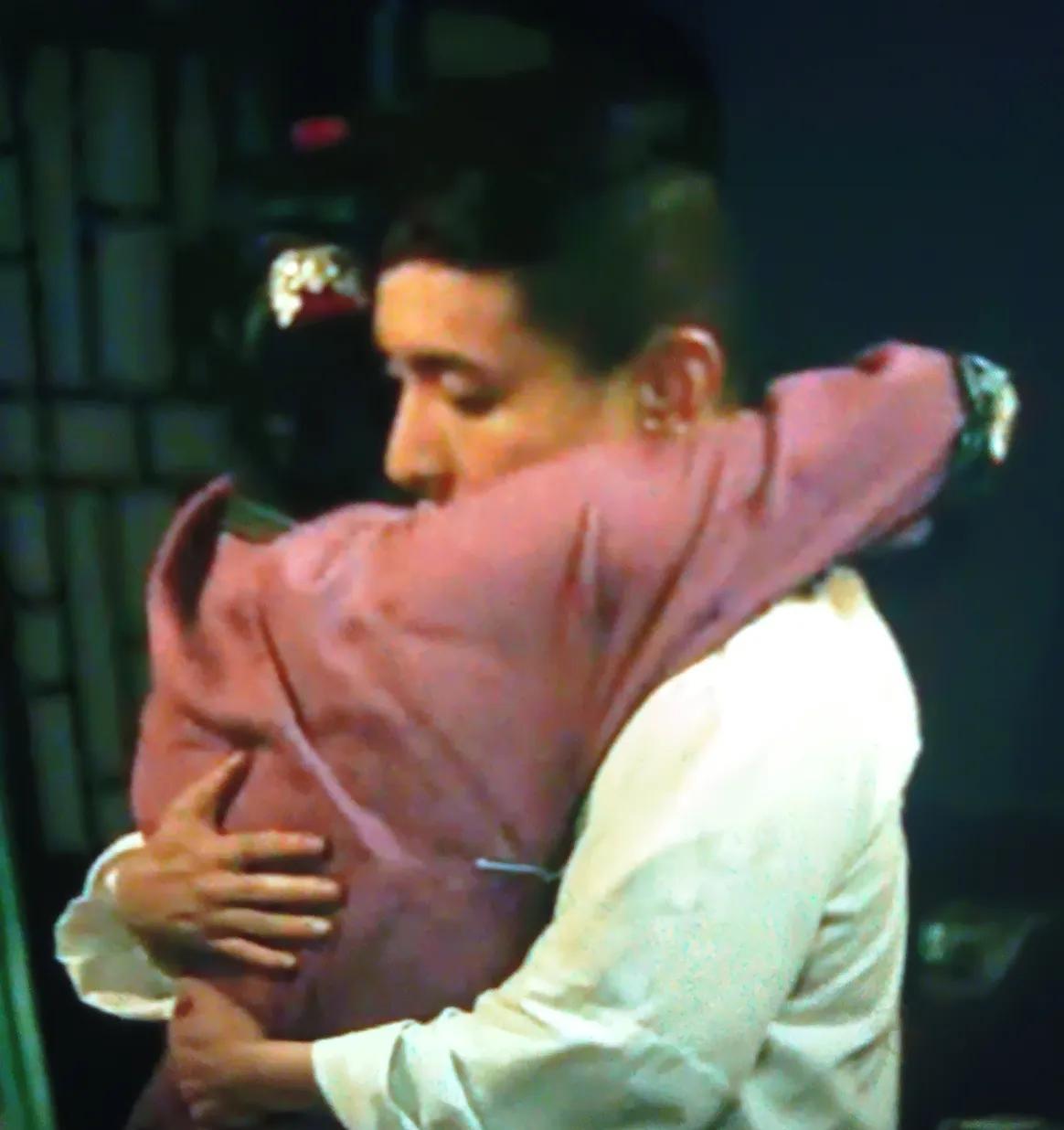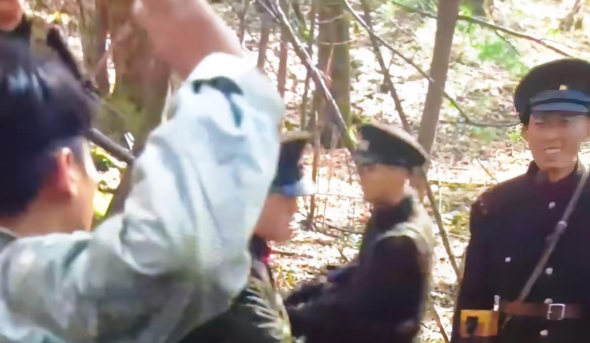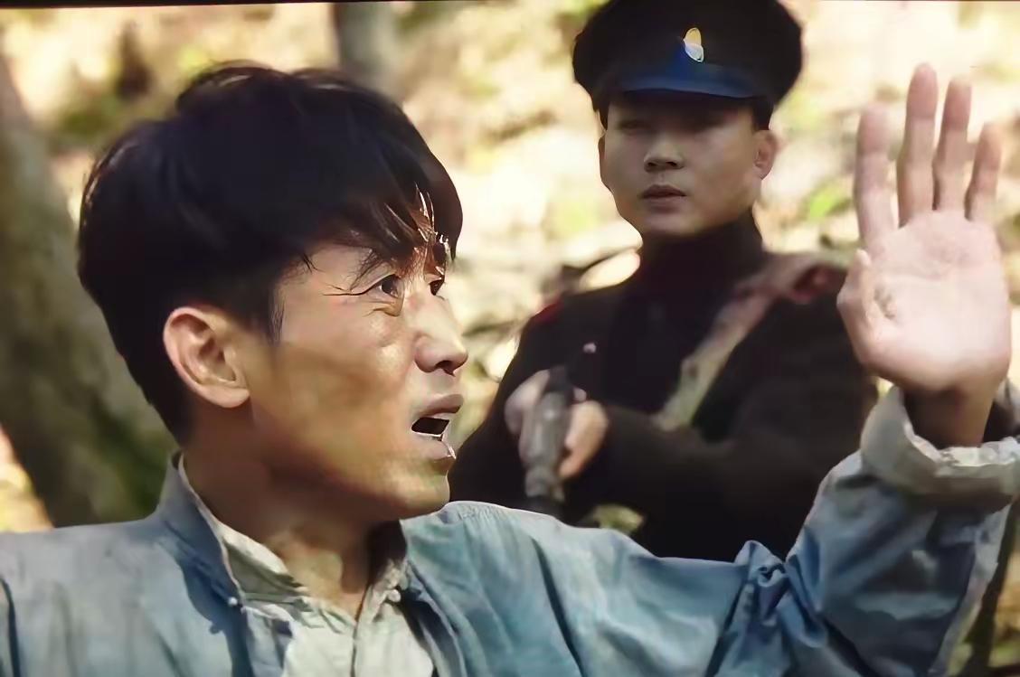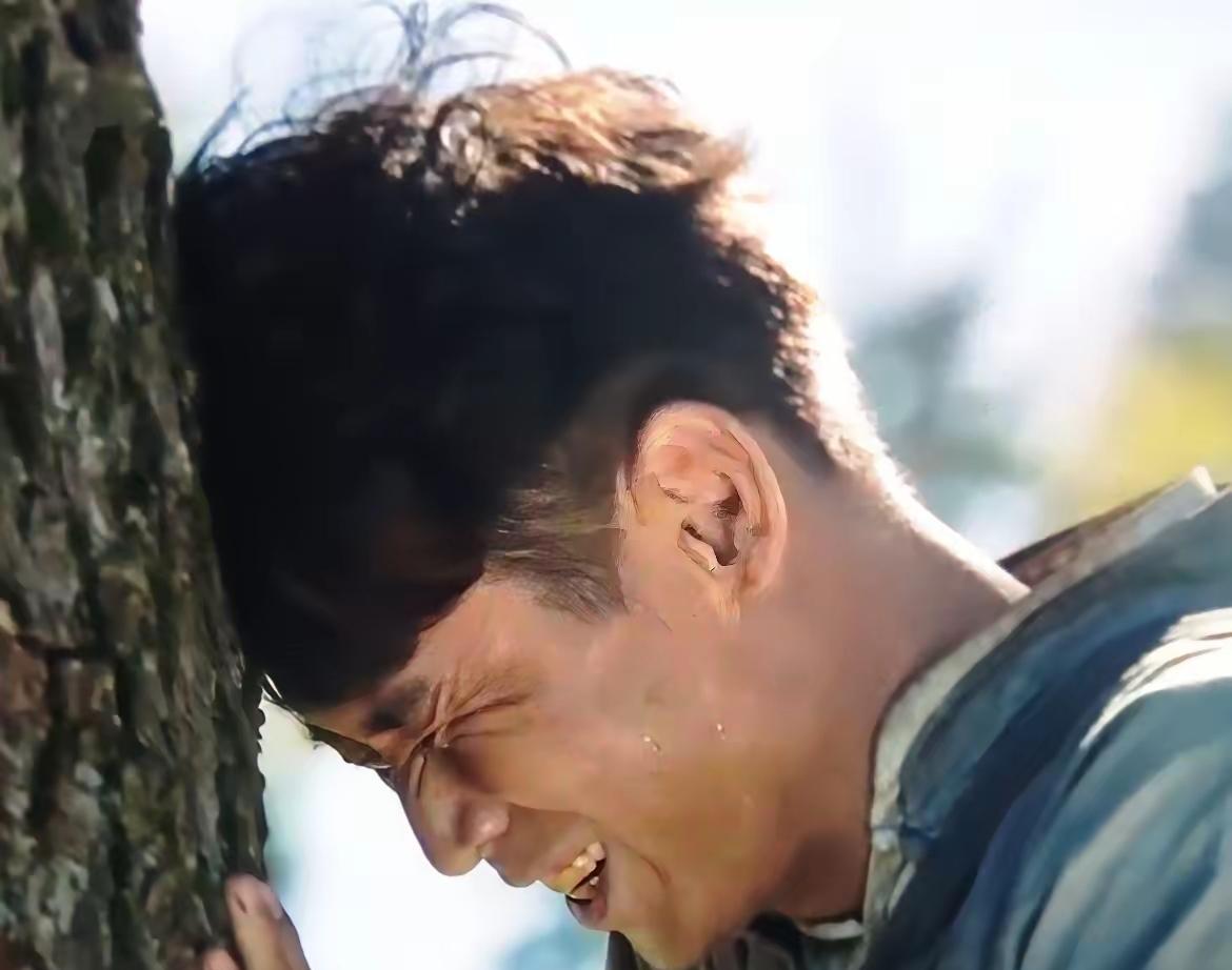 《归队》汤德远来到八棵松,看到树上刻了福庆的号,他激动不已,德远正高兴地笑着,却