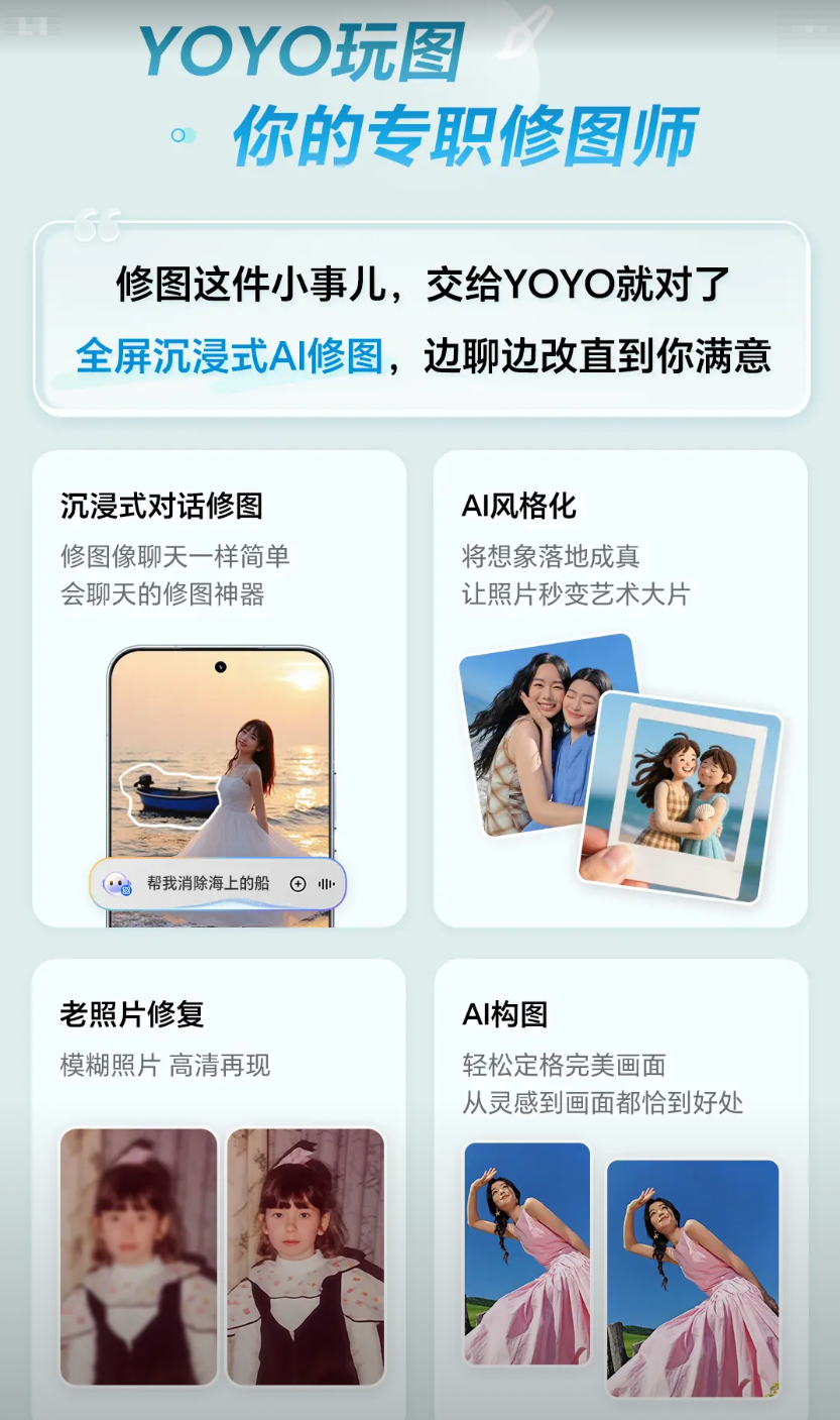 真的绝了!荣耀现在基本上一个月就会有一次比较大的更新,会新增很多功能。 比如8月份更新了AI通话助理、YOYO的视频通话、AI构图等等功能。 最重要的是不只有旗舰手机和新手机会更新,基本上近两三年发布的手机都会升级。