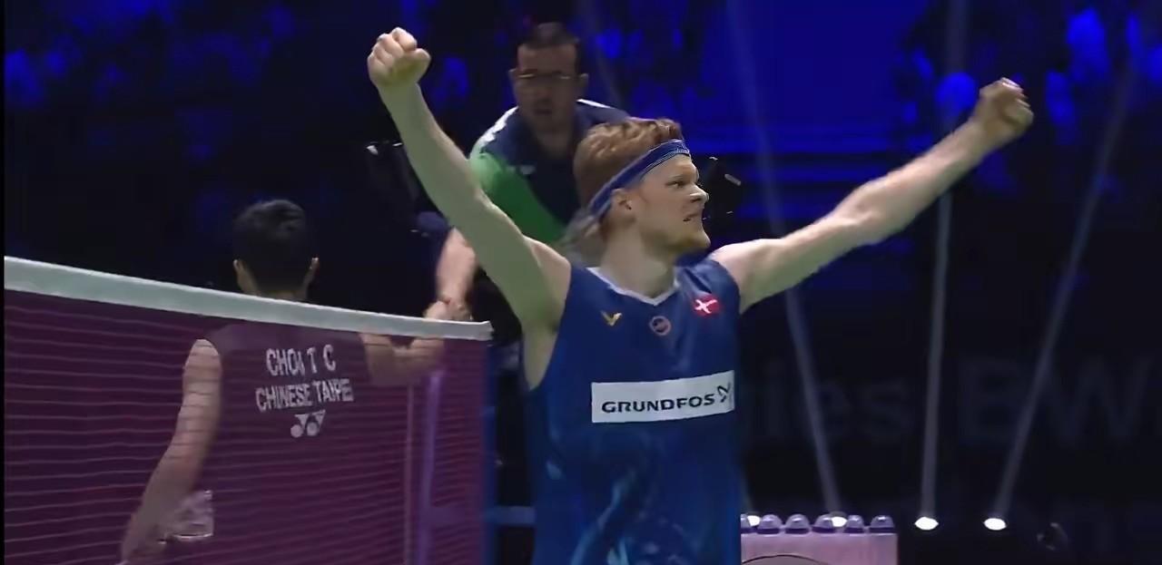 北京时间今天凌晨进行的两场羽毛球世锦赛男单1/4决赛,安东森以21-17、23-