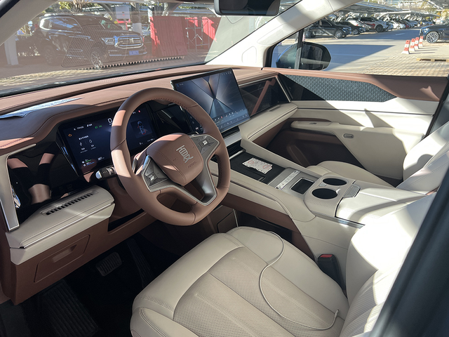比亚迪夏4种外观颜色,白色最显大气,黑色很沉稳,紫色应该是和秦L一样的建窑紫,黑和紫图片看不太出来区别,还有一个蓝色,应该和宋Pro用过那个远山青接近的一个颜色。内饰,几台试驾车,都是一种,棕加米白,很有档次感